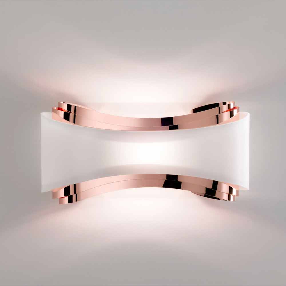 Wall lamp formed by steel bands skillfully bent by hand in order to create a fluid and composite form.