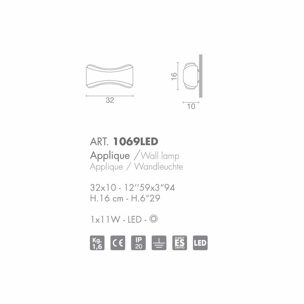 Selene Ionica wall lamp, made in Italy, 32x10xH16 cm, modern design.