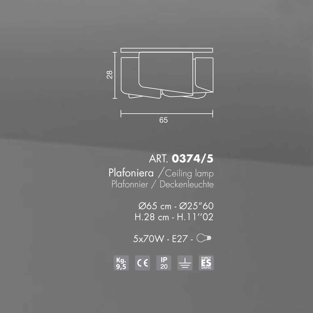 Bulb type: 5 light bulbs E 27 70W (NOT INCLUDED).