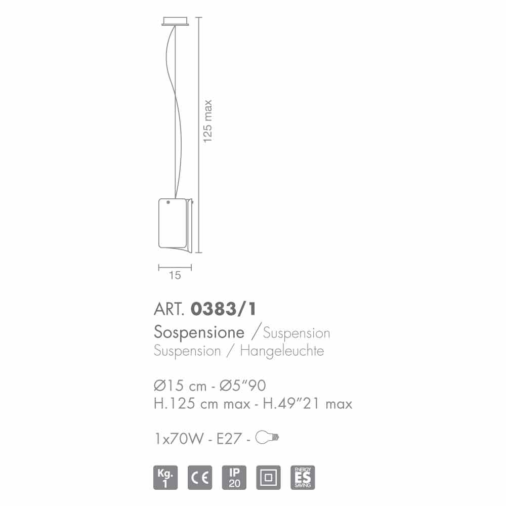 This modern design lamp is conceived for 1 light bulb E 27 70W (NOT INCLUDED).
