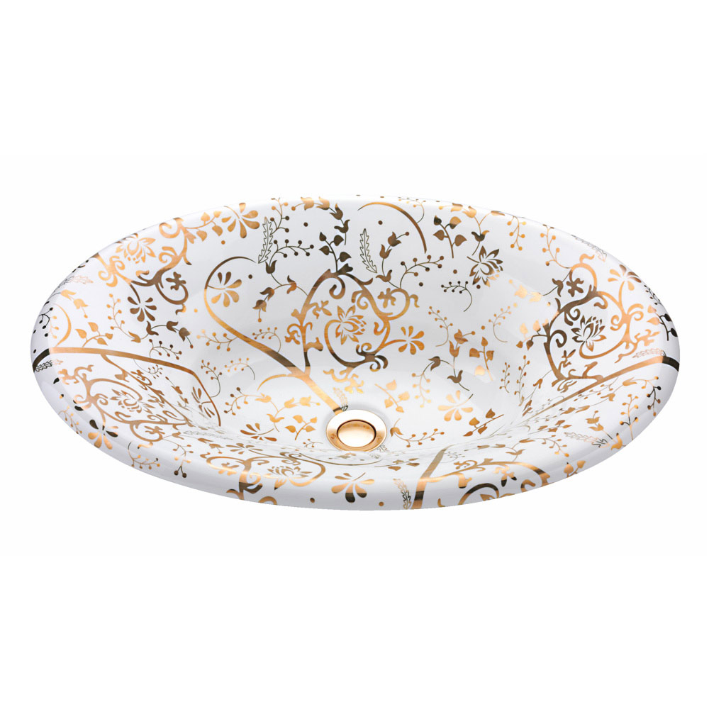 Semi-recessed bathroom sink made of fire clay with gold spiral finish , entirely Made in Italy. This sink is a touch of class that makes the bathroom unique and refined. Thanks to the gold finish , it becomes a real design and furnishing object that gives personality and character to the room. It was made completely in Italy, from the design, to the choice of materials, to the creation process and final painting to guarantee all the quality of Made in Italy.
