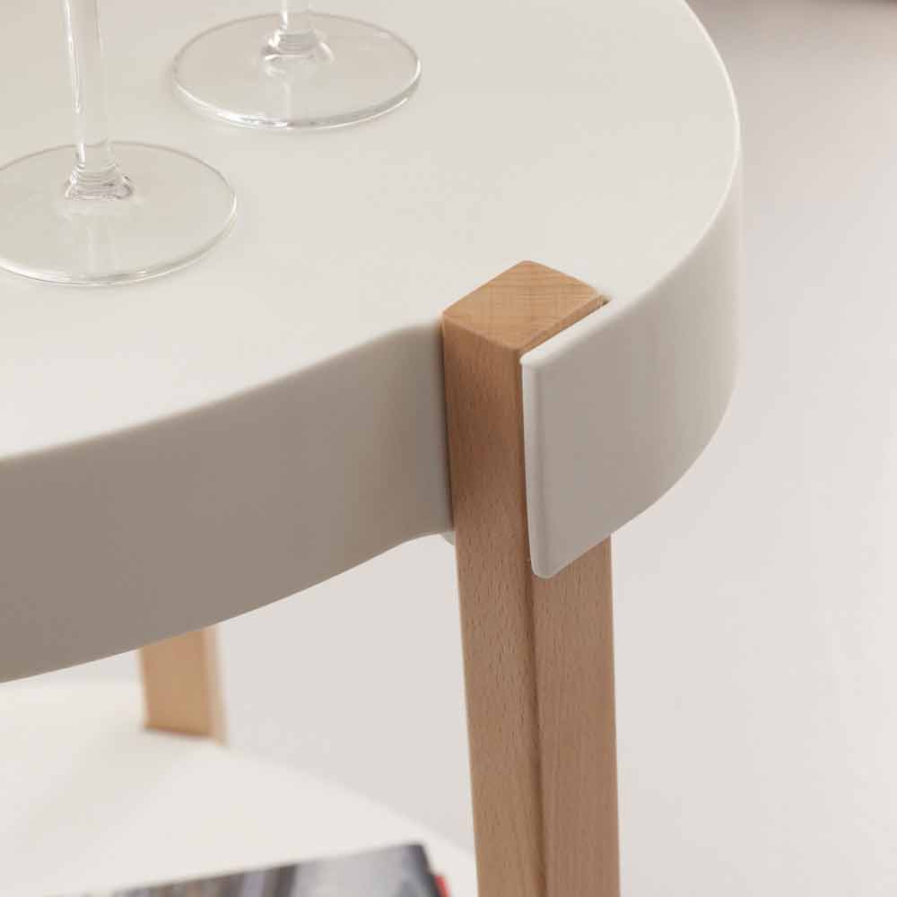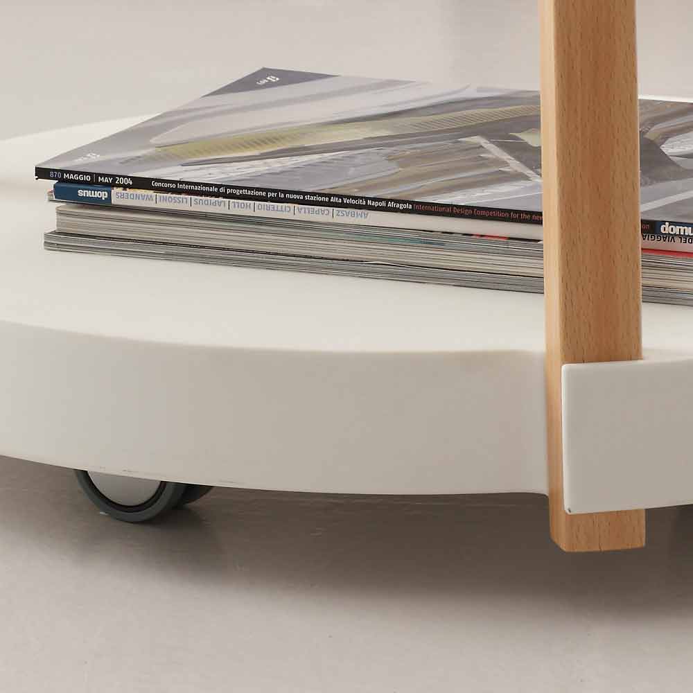 Serving cart Pineto, made of beechwood and white polypropylene, modern design.