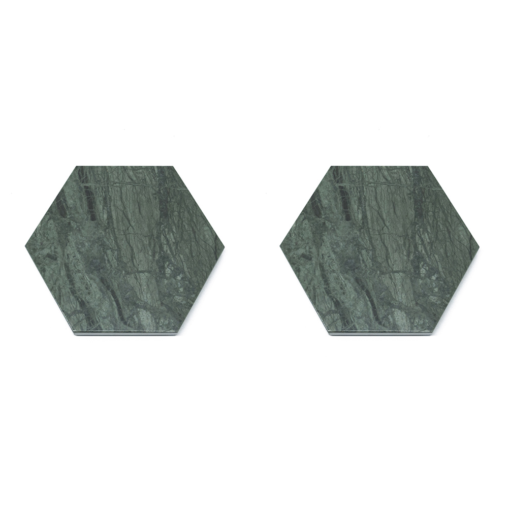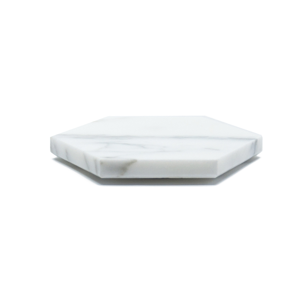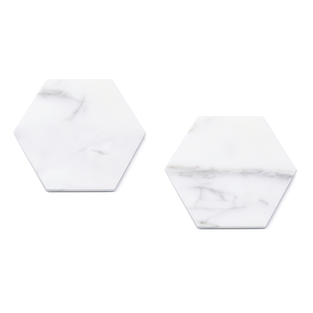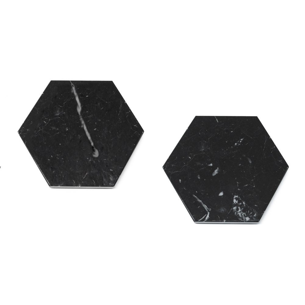 These marble coasters are an example of functional sophistication for the contemporary home. Cut into a hexagonal shape, a geometric pleasure for the eyes, and embellished with the natural and ever-changing veins of marble, these coasters are not only practical, but are real touches of elegance for your table.