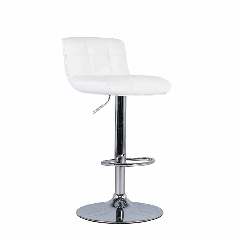 Stools with chromed metal base and padded seat in pvc. Available in the following colors: white, gray, red, dove gray.