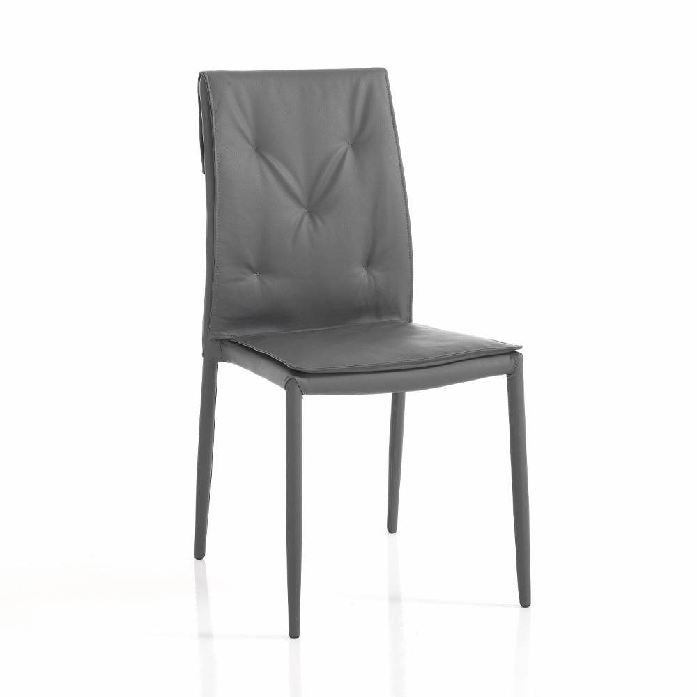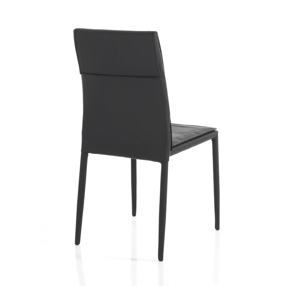 Set of 4 chairs completely covered in non-removable synthetic leather , internal padding in medium intensity foam rubber and internal structure made of steel . These items, thanks to their simple and elegant finishes, are perfect for completing the furnishings of any living room, kitchen and living room. They offer a comfortable and comfortable seat and great stability thanks to the shape of the legs. The materials used are of excellent quality to offer the customer a product that is not only beautiful to look at but also practical and functional.
