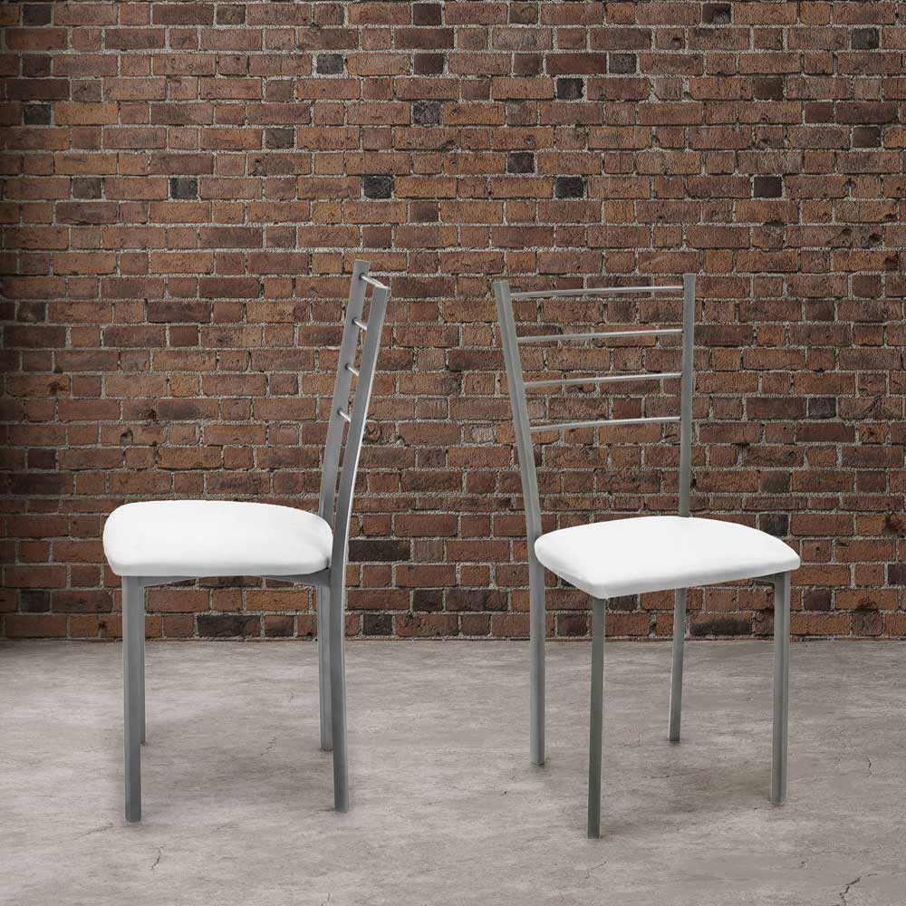 Set of 4 chairs made with seat covered in white synthetic leather , gray painted metal structure. This article, thanks to its simple and elegant finishes , is perfect for completing the furnishings of any living room, kitchen and living room. It offers a comfortable and comfortable seat and great stability thanks to the shape of the legs. The materials used are of excellent quality to offer the customer a product that is not only beautiful to look at but also practical and functional.