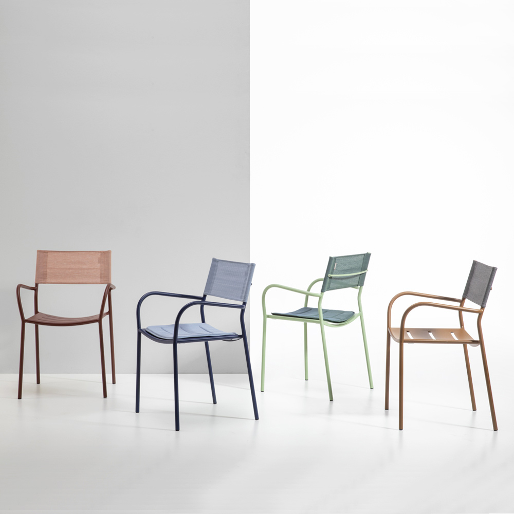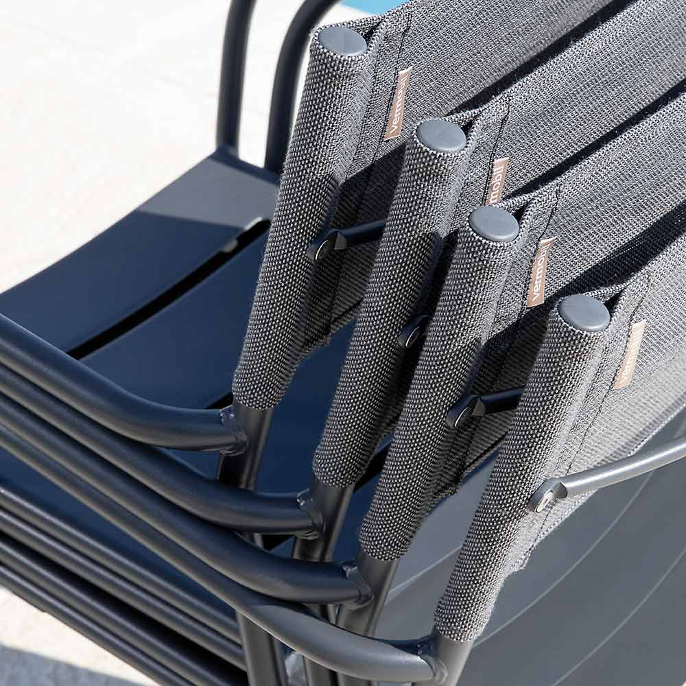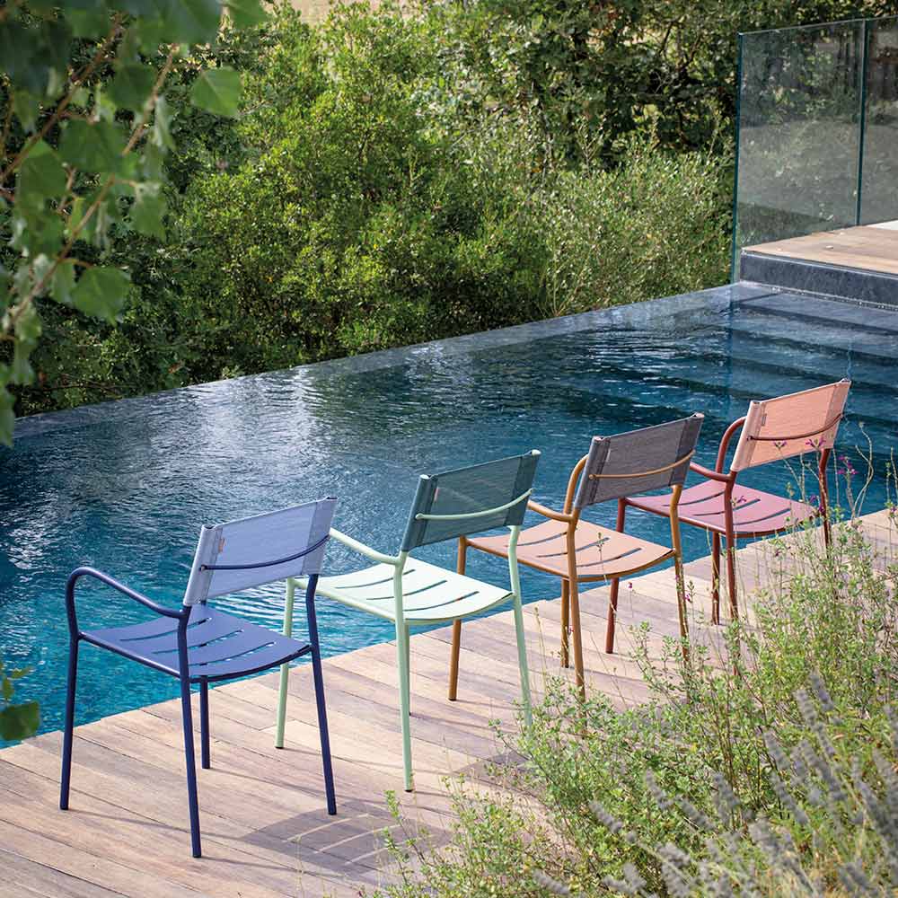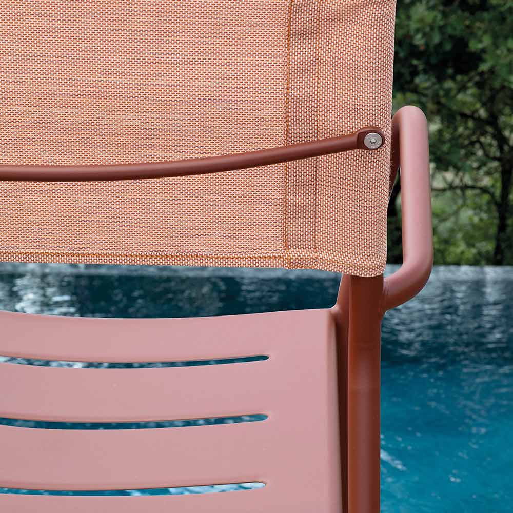 The ergonomic seat with sinuous lines ensures excellent support and comfort, while the breathable batyline backrest offers superior comfort, adapting perfectly to the shape of the body and promoting air circulation even on the hottest days. The rounded armrests add a touch of refinement, making the chair even more comfortable for pleasant moments of relaxation outdoors.