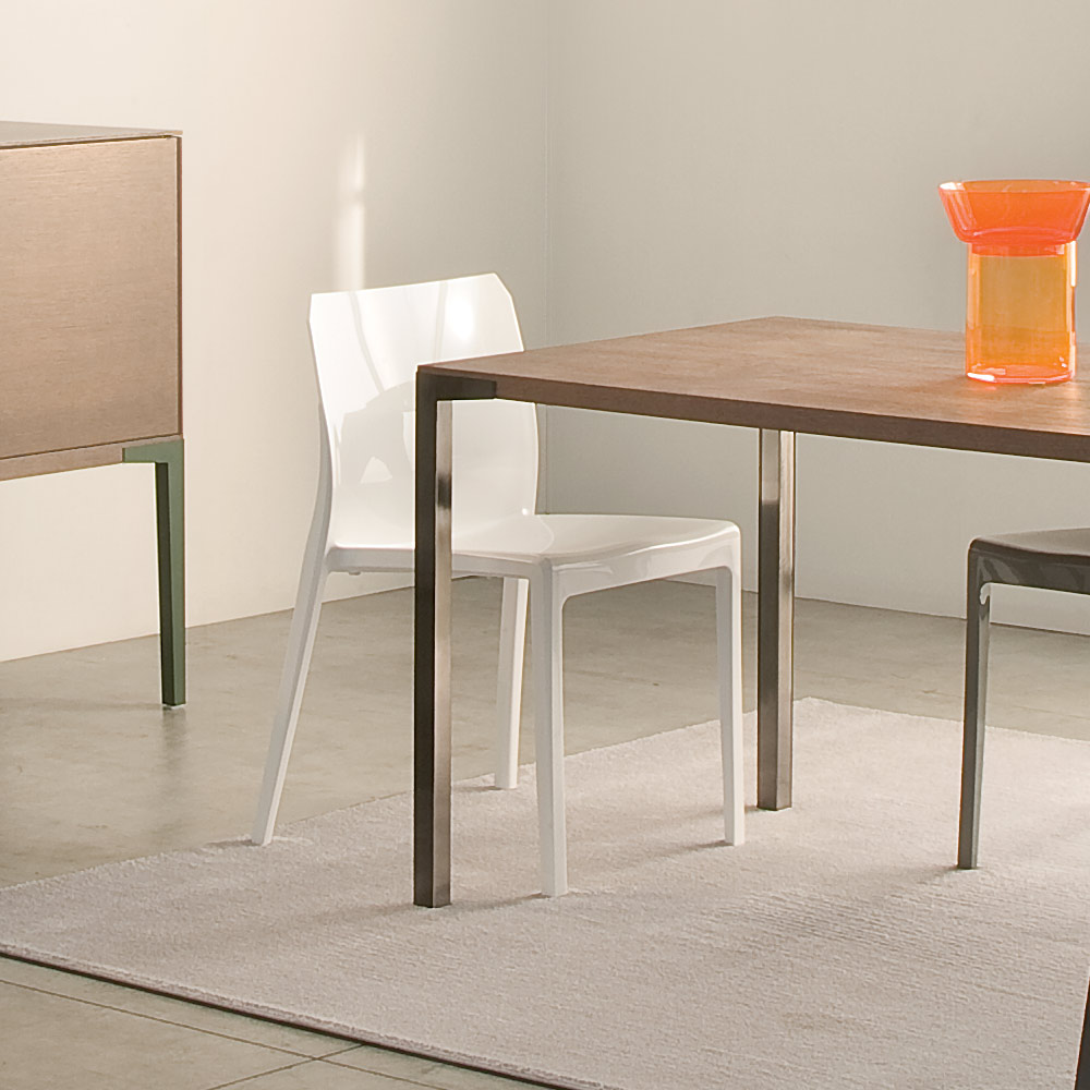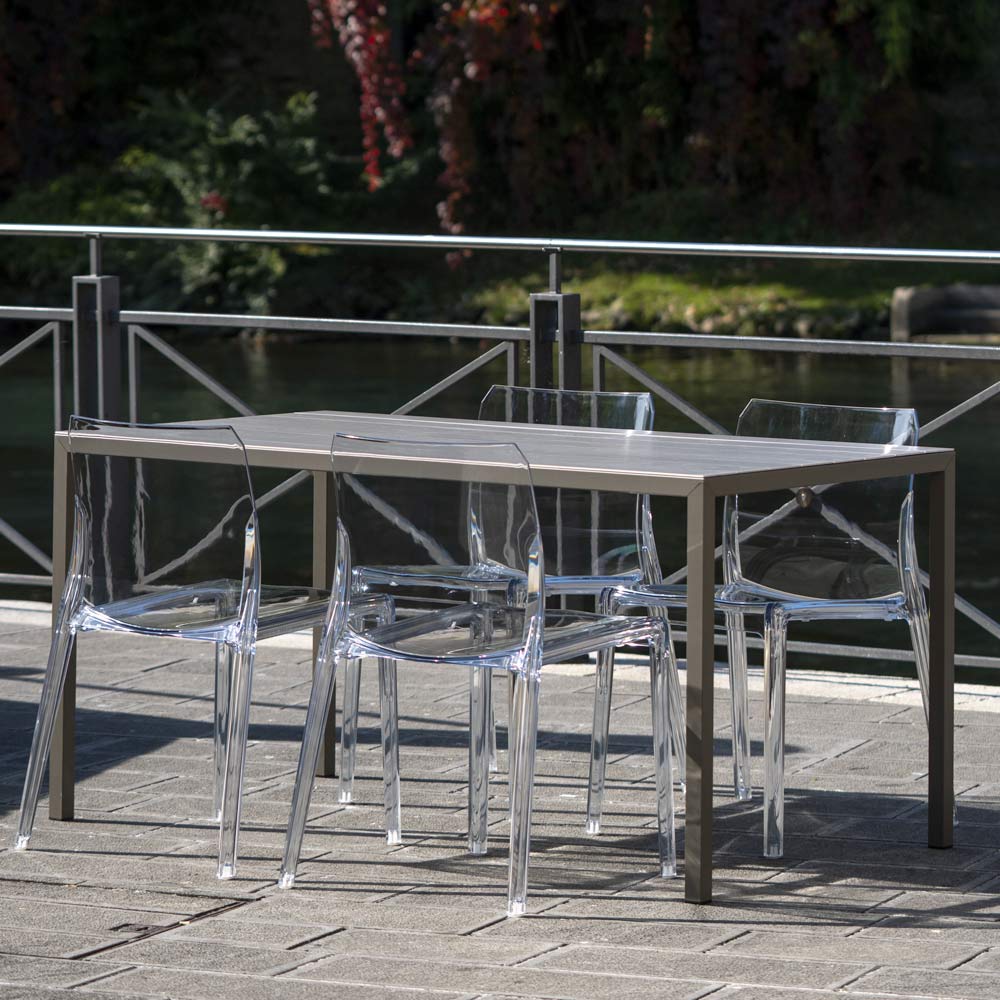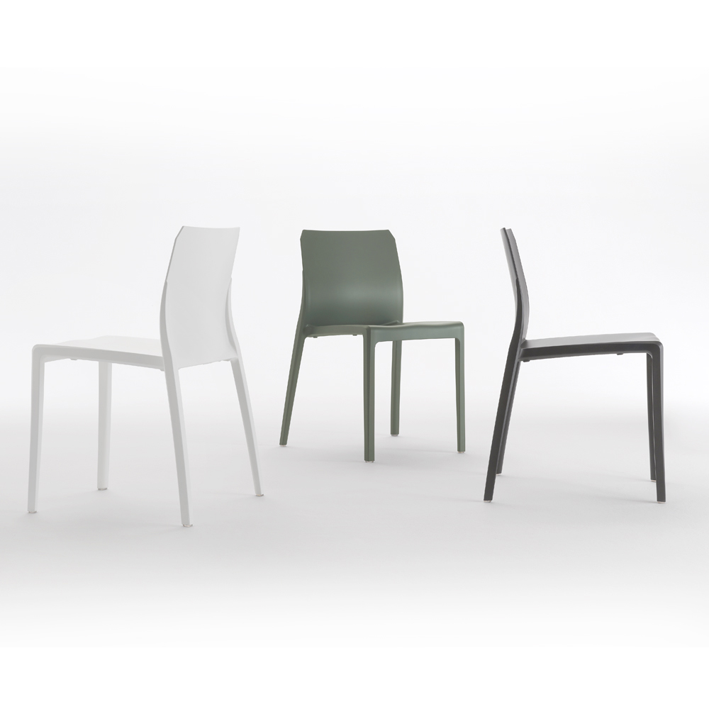 This chair is the very essence of versatility and style . With a range of colours, this chair fits harmoniously into any type of setting, both indoors and outdoors .