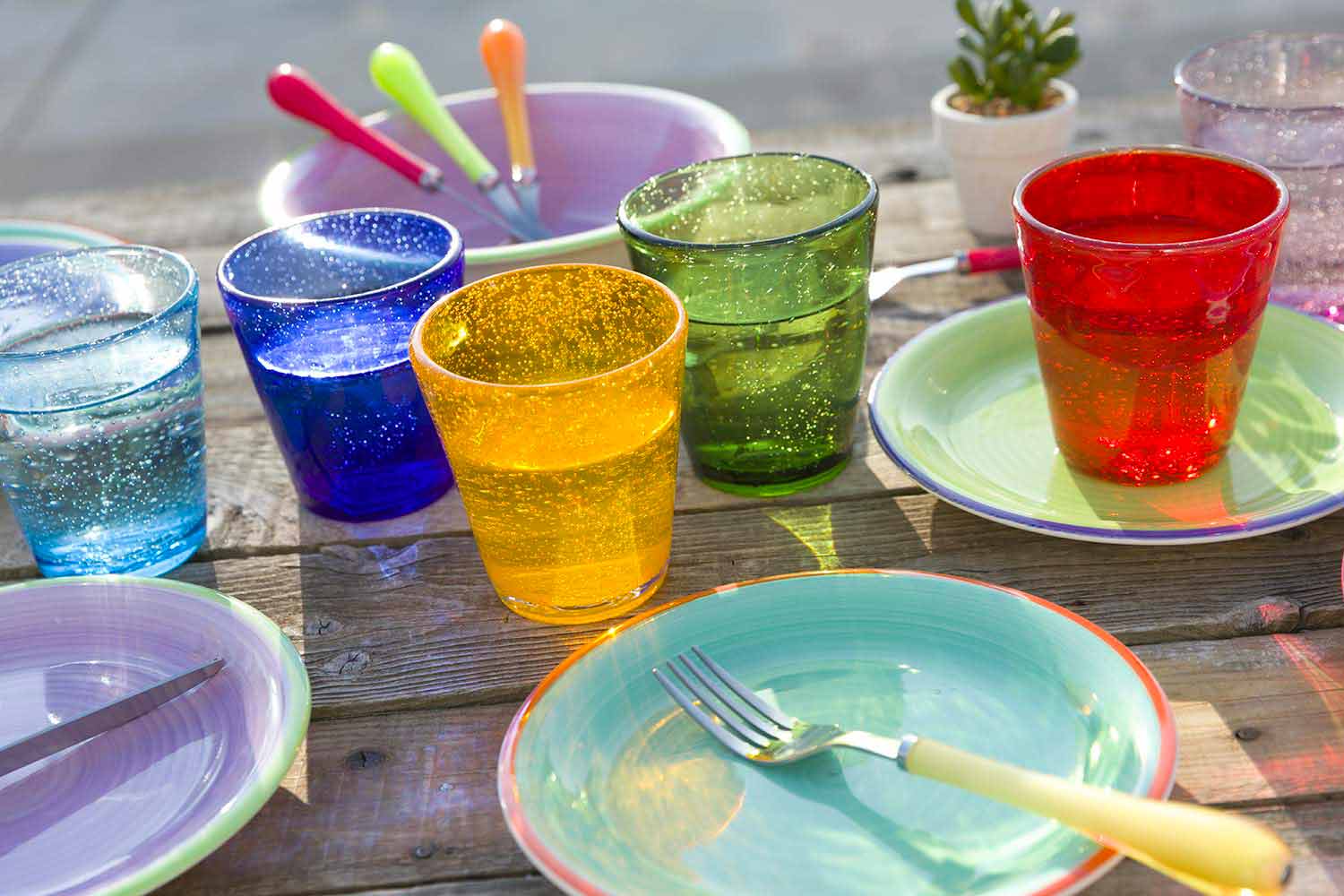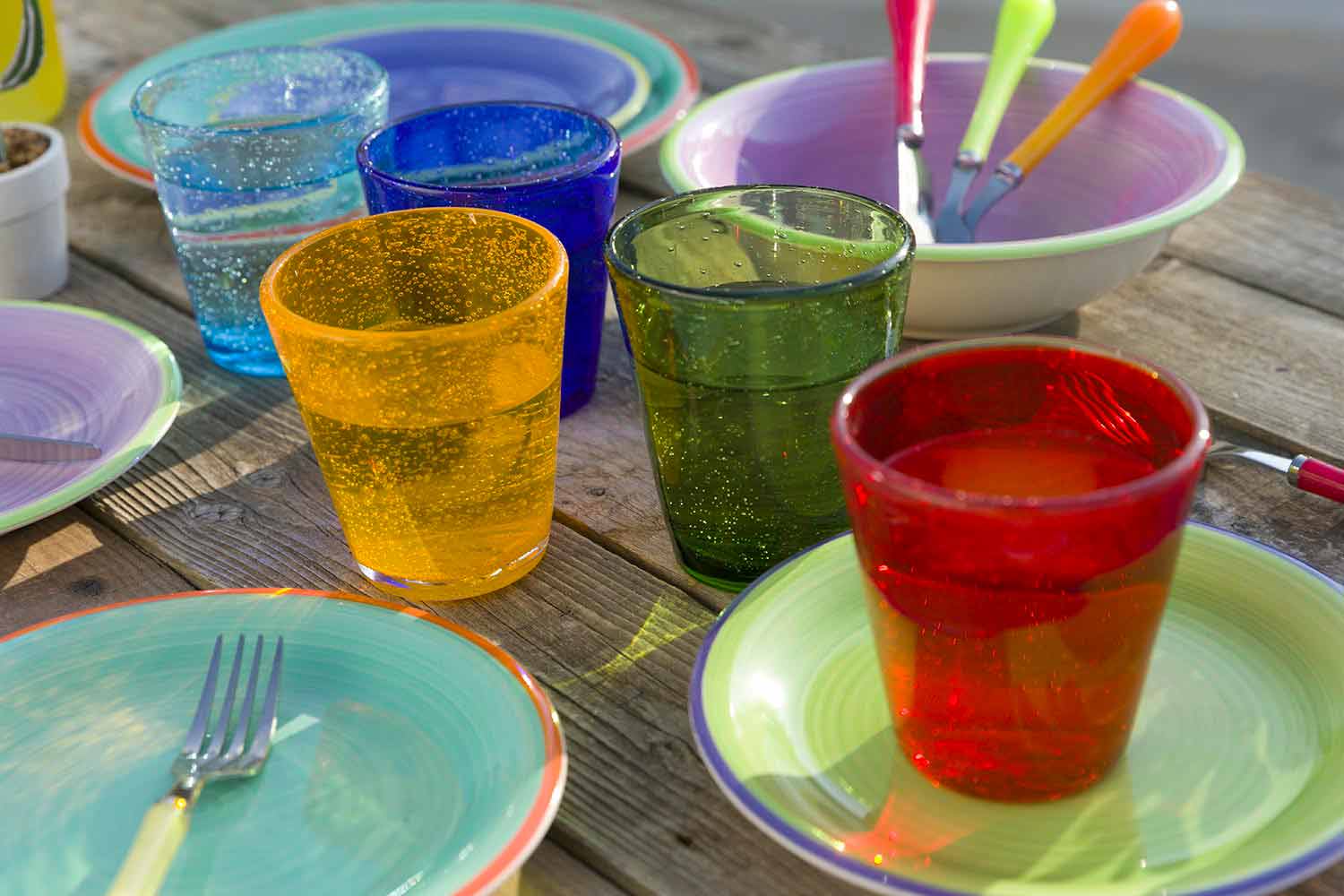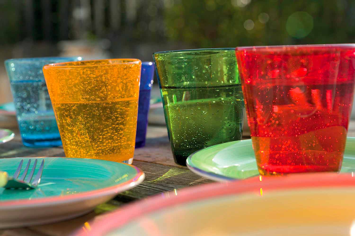 This line of glasses accompanies us on a journey that from the blue shades of the sea welcomes the blue shades of the sky, creating a refined and timeless refined atmosphere.