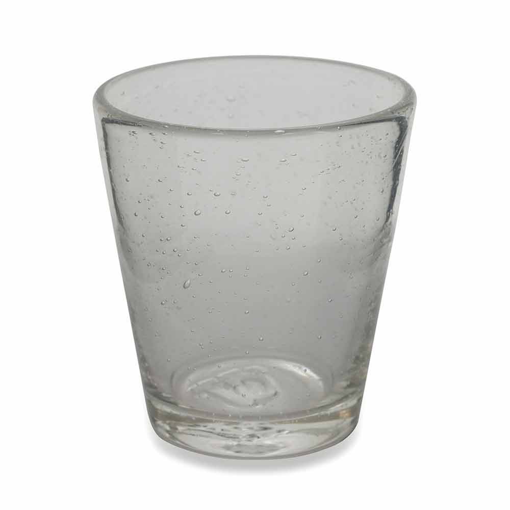 The capacious shape welcomes the drinks, revealed by the transparency of the blown glass.