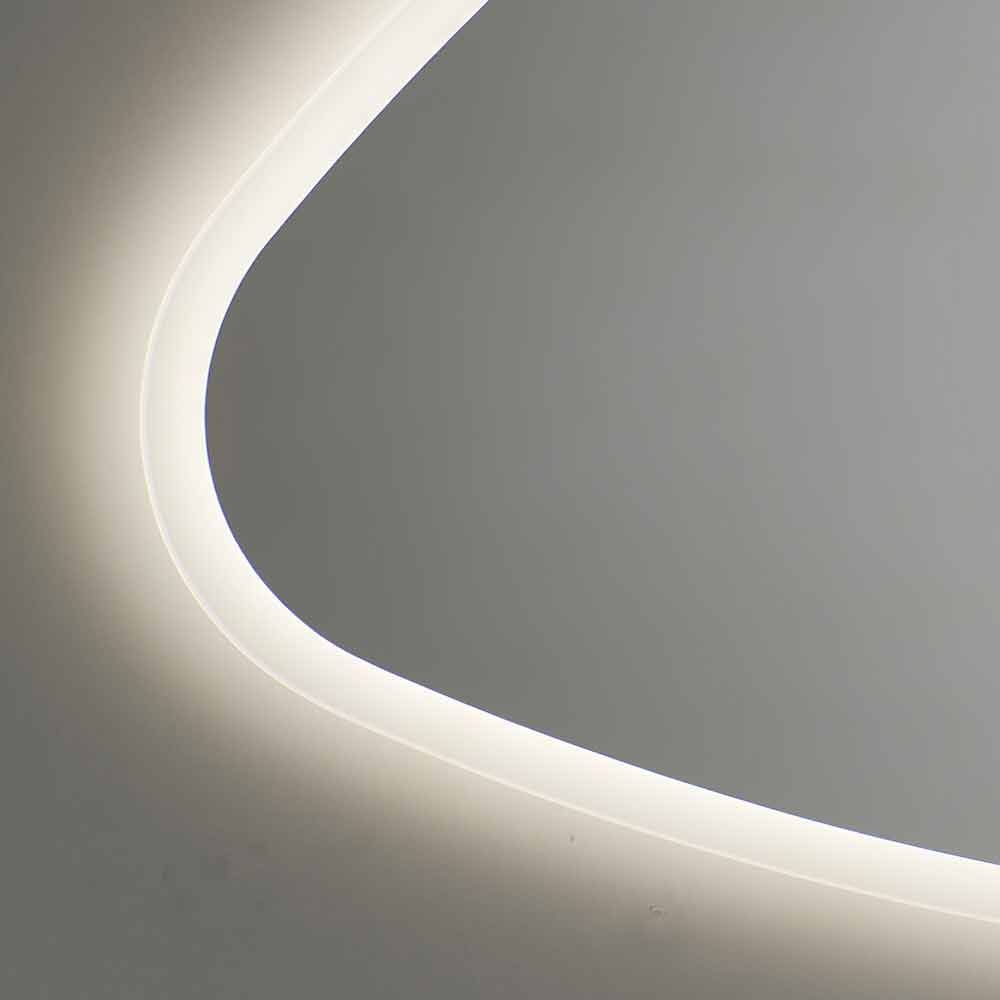 Shaped wall mirror made in Italy in 4mm thick glass with perimeter sandblasting and LED backlighting. Originality and design are the fundamental elements that best describe this wonderful object with a creative and unusual style , making it the ideal choice to enrich your bathroom area with a touch of personality. Its particular rectangular shape accentuates its uniqueness and, thanks to its clean and elegantlines , helps to create a sense of harmony and movement in the room that does not go unnoticed. The presence of the LED backlighting increases its functionality allowing you to obtain a homogeneous light ideal for your moments of relaxation in which to take care of yourself.