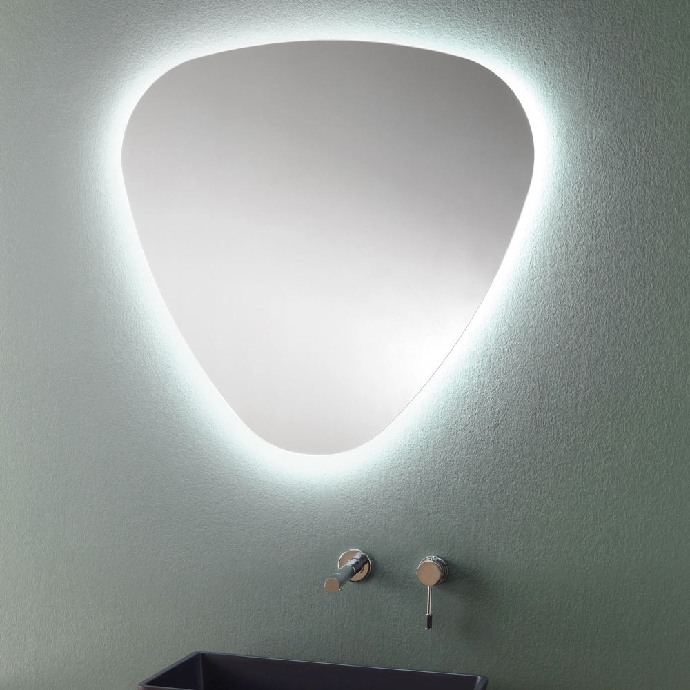 Polished edge shaped wall bathroom mirror with LED backlighting, high quality made in Italy.