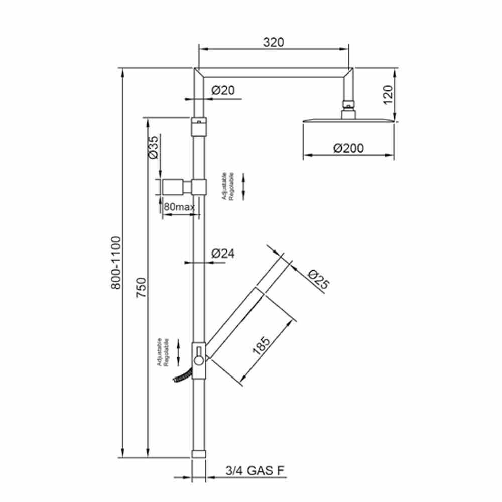 Shower column in brass, steel and ABS with sliding support, high quality product Made in Italy.