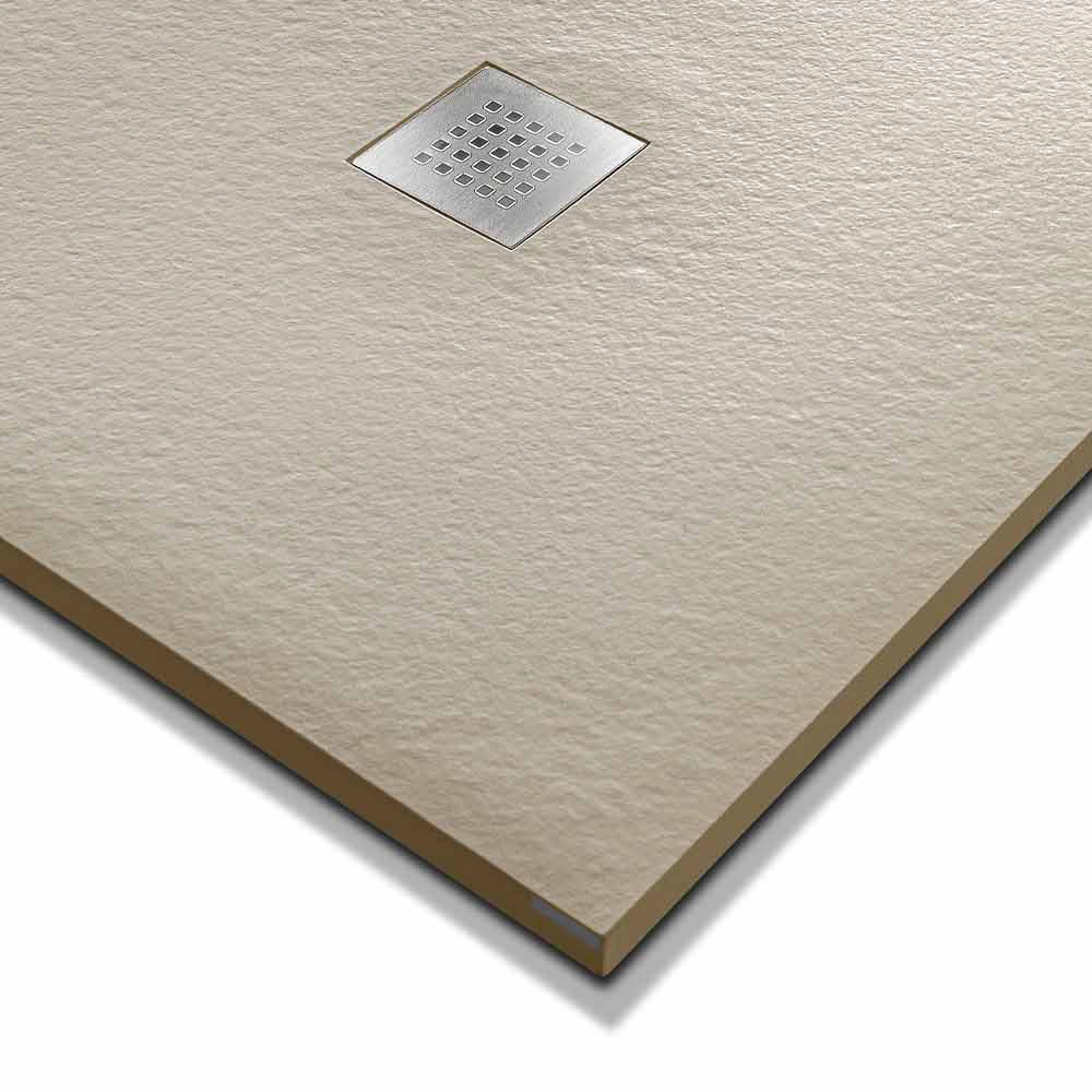 Shower tray made of resin and characterized with a wonderful and elegant stone effect finish . Complete with steel grate and drain. Conceived and designed for those looking for functionality without having to give up the fundamental aesthetic and design side, this article dedicated to the bathroom area impeccably responds to both requests, proving to be the perfect shower tray for environments with a modern taste. Its lines are characterized by extreme simplicity while what makes the product unique is undoubtedly the wonderful texture that conquers from the first glance thanks to the majesty of the stone effect that evokes the beauty of nature.