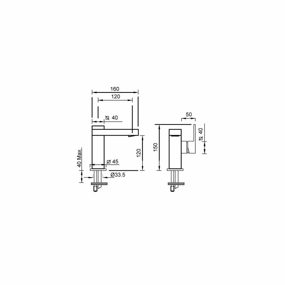 Basin mixer with lateral lever, without waste, with hoses with 3/8 female cap and fixing kit. Designed and produced exclusively in Italy in brass ; the materials used are of high quality and comply with European standards.
