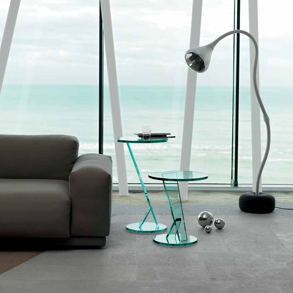 This sofa side table for living room is characterized by its original and multipurpose design made entirely of extra-clear glass.