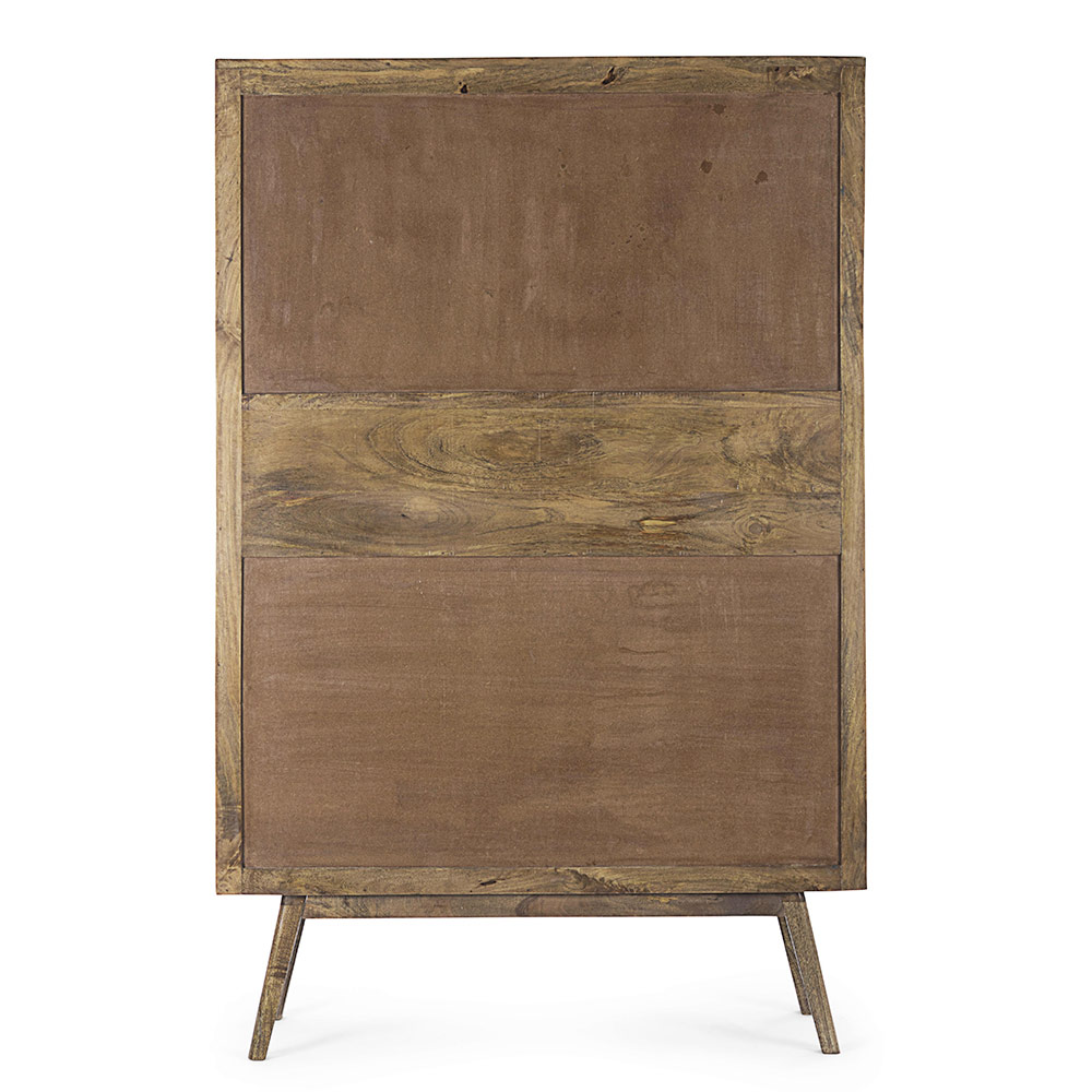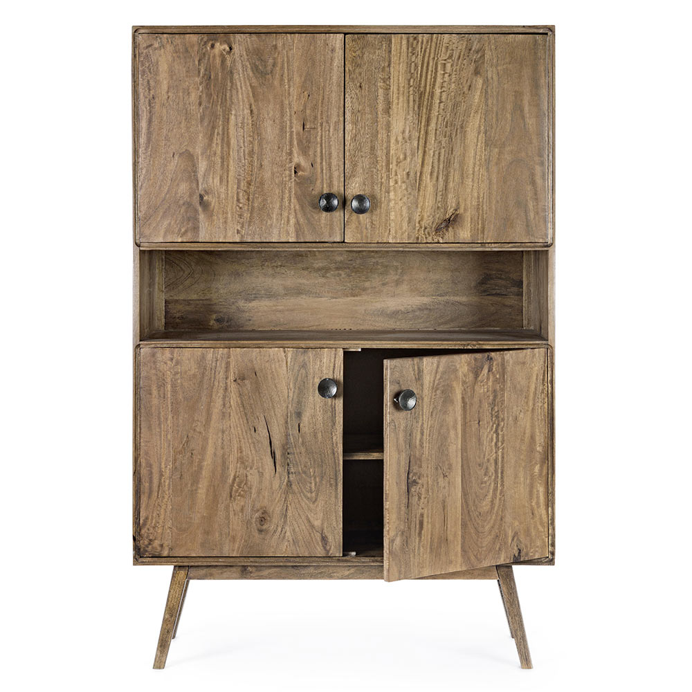 This design sideboard for the living room has a structure and legs to be assembled in mango wood with a water-based finish and back in MDF. The compartment includes a shelf and the knobs are in steel. The result is a vintage accessory with an ethnicflavor.