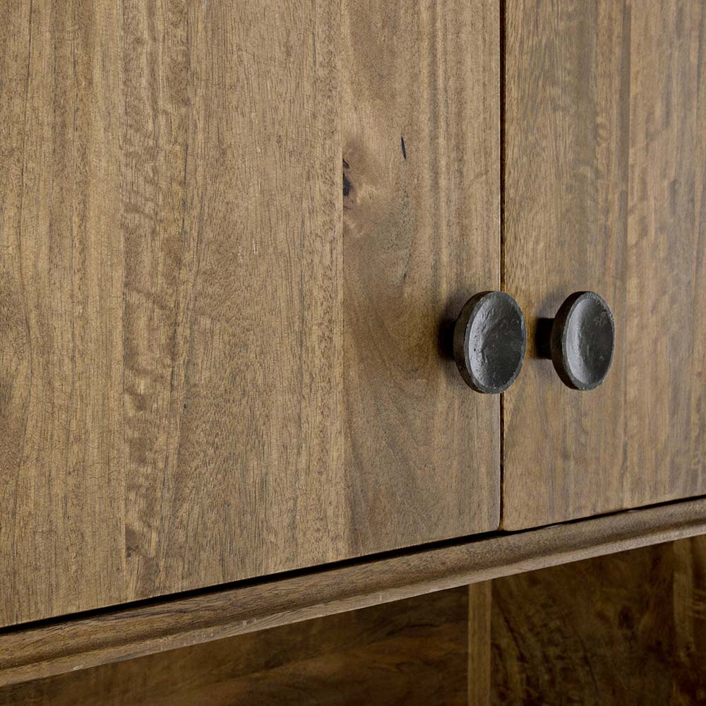 Mango wood sideboard with 4 doors and vintage-ethnic style shelf.