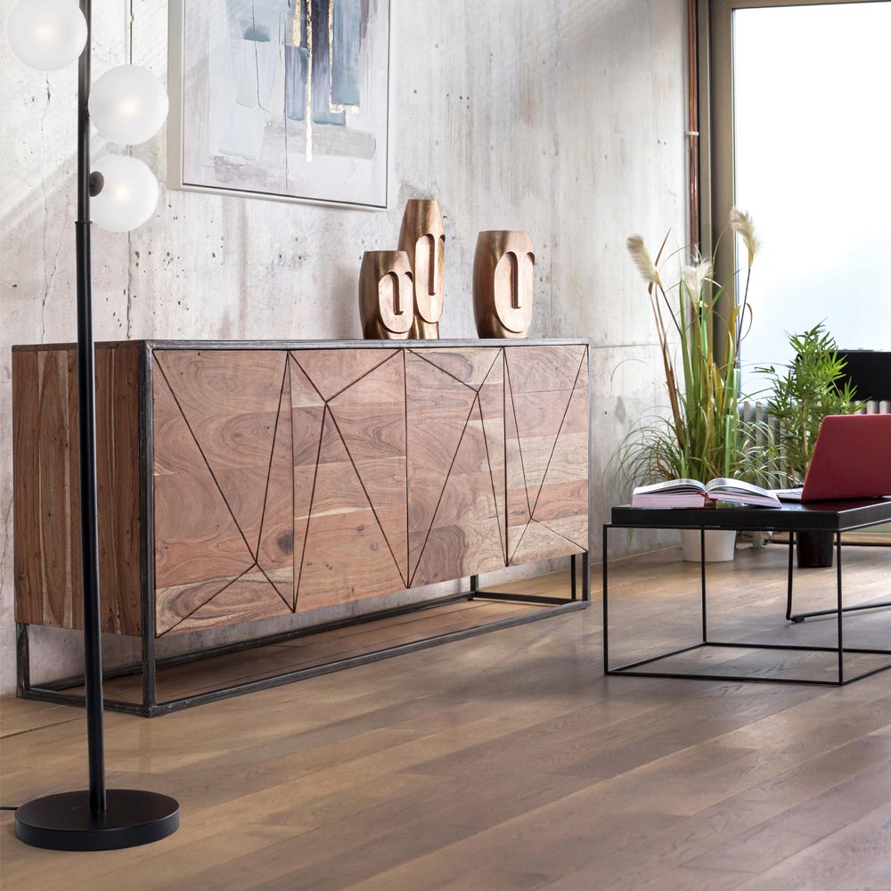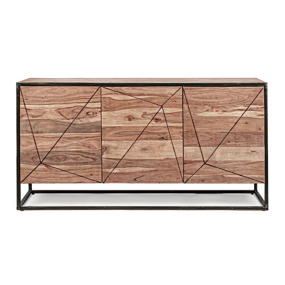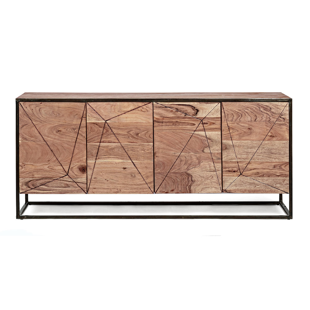Sideboard in acacia wood and steel in ethnic style, 2 sizes.
