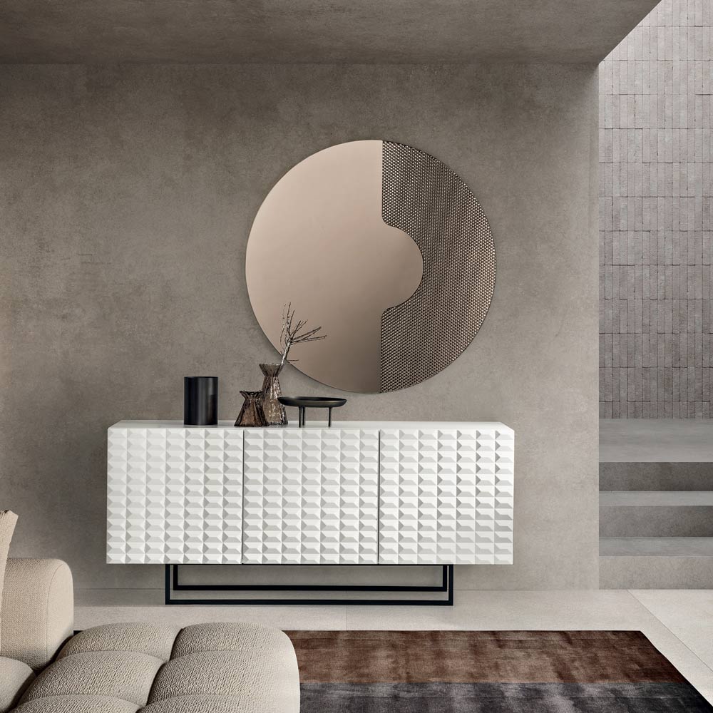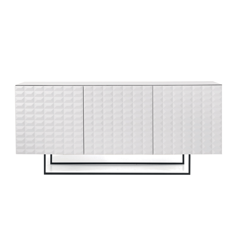 Made in Italy designer sideboard with three-dimensional diamond-shaped doors and metal base