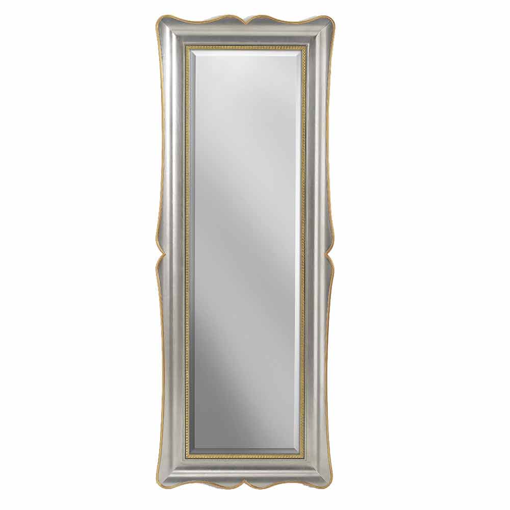 This mirror is a specimen of timeless elegance, combining classic finishes with refined golden details, a perfect choice to bring a touch of luxury to any living space . Its slim, elongated design is framed by a frame with gently wavy edges, adding a sense of movement and visual grace to the ensemble.