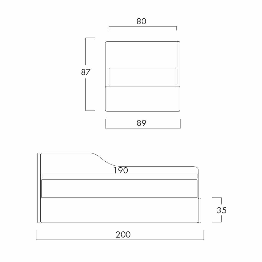 Single bed with shaped headboard, Line 8 by Bolzan, made in Italy Line is a refined classic, with distinctive and sober features. Its composition is delicate, with the ability to adapt to any type of environment. Line follows stylistic and functional evolutions. The Line 8 single bed has an iron and raw wood fibre frame, covered in polyurethane foam without chlorofluorocarbons according to UNI standards and lined with light-stable velfodera. On this base, a 30 mm high metal frame painted with thermosetting epoxy powders is mounted, with a steam-bent beech slatted base. The bed is available in the following sizes: - 80x190 cm (finished dimensions L 91 x D 200 x H 87 cm) -90x200 cm (finished dimensions L 101 x D 210 x H 87 cm)