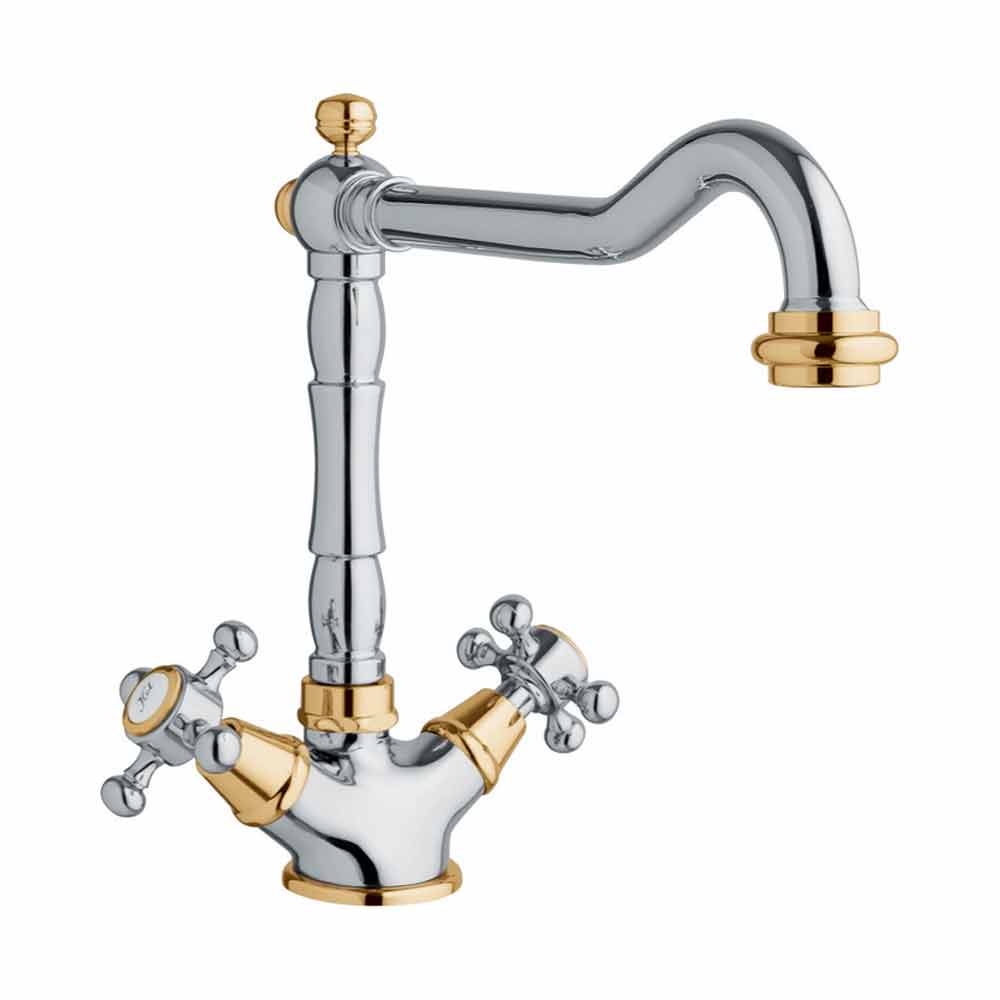 Single-hole mixer for kitchen sink in brass, classic design Made in Italy.
