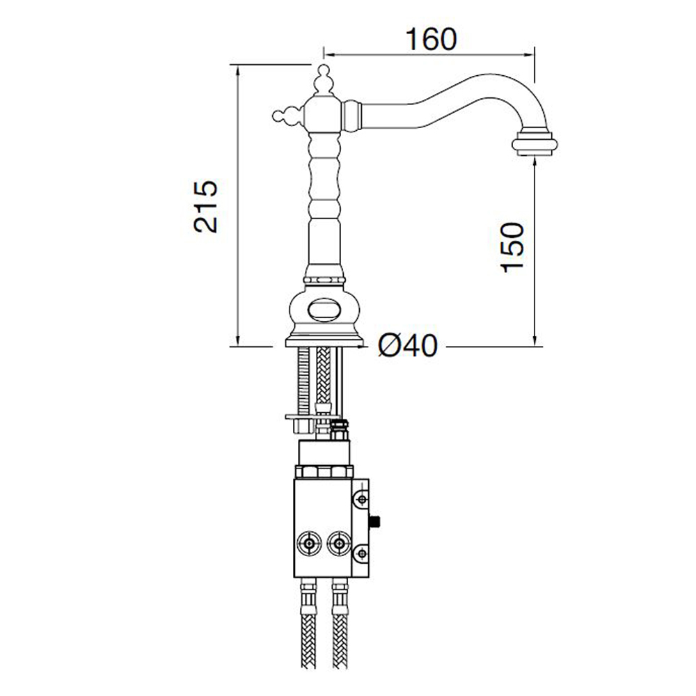 This sophisticated single-hole electronic faucet for washbasin low and with drain è entirely handcrafted by expert artisans in the field inheavy brass, cast in molds that respect the craft systems of the past and protected with a thick layer of finish available in various colors. This is an electronic faucet controlled by photocell. Placing the hand in front of the photocell generates the impulse for opening the water flow valve. Removing the hand, after a minimum time, generates the opposite impulse. Water mixing è automatic and canò be adjusted by register placed in the box that remains under the basin which has the function of “control unit” of the faucet. .