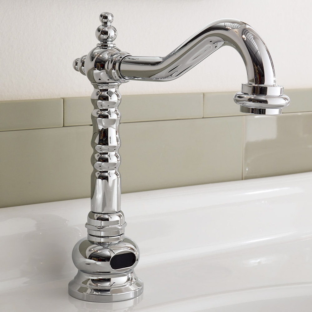 Classically styled single-hole electronic sink faucet in brass, high quality; made in Italy.