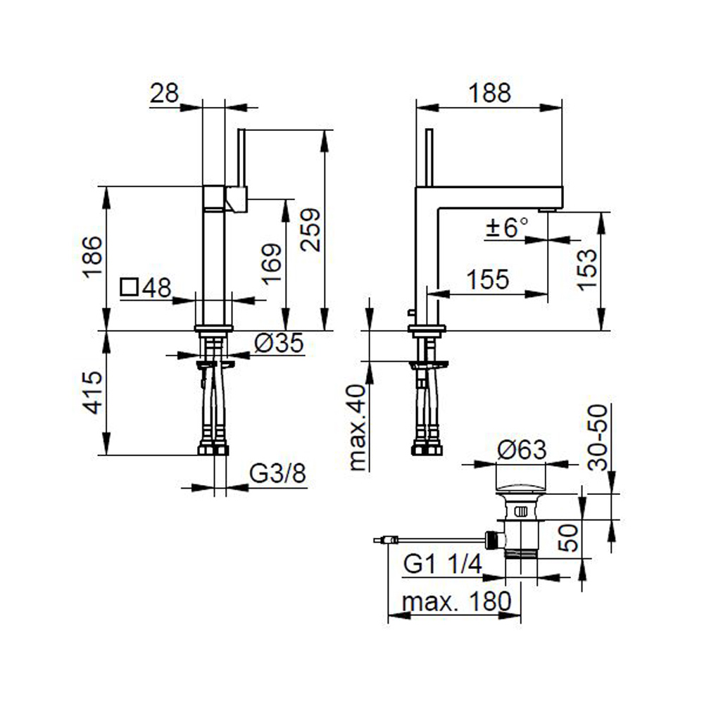 3-Hole Brass Bathroom Basin Faucet with Classic Style Drain - Ercolina