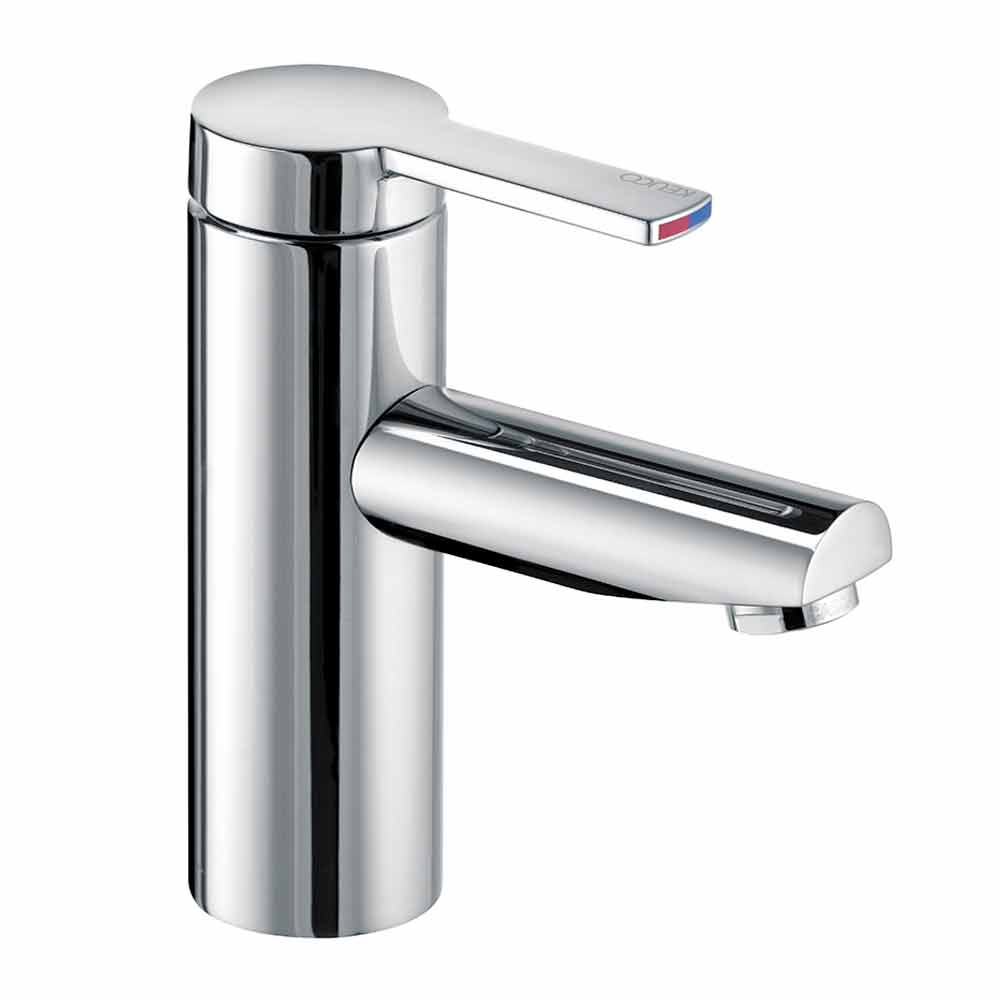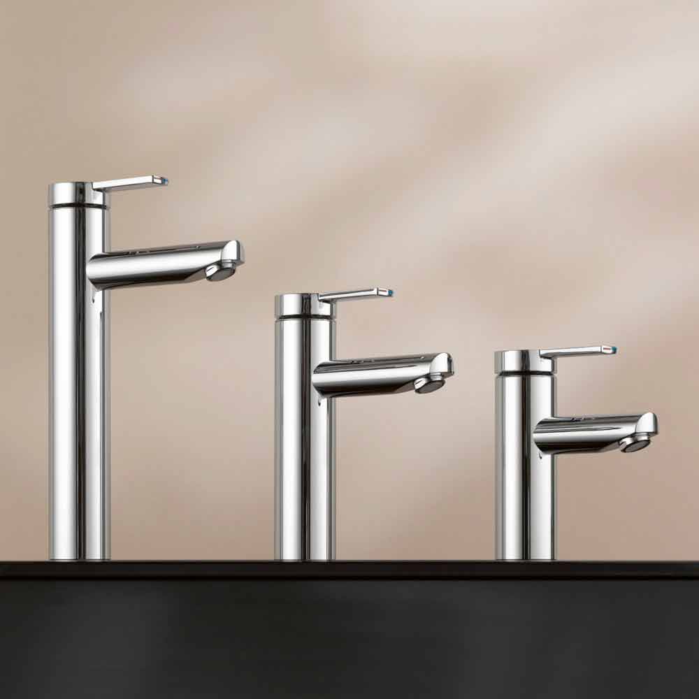 Modern single-lever bathroom sink mixer made of brass with chrome finish.