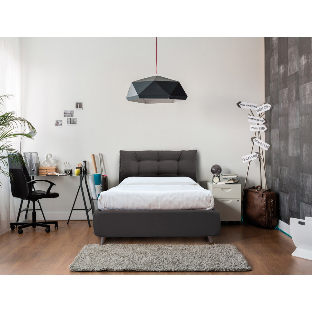 Model with comfort container: padded bed frame with supported base included and comfortable 11 cm high foot which allows cleaning under the structure. Container with oblique and horizontal opening which adds the practicality of a large compartment with incredible capacity and guarantees maximum convenience when making the bed.