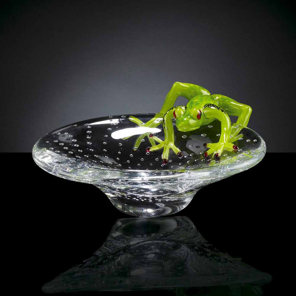 Decorative ornament in the shape of a tray with frog in glass Made in Italy, precious.