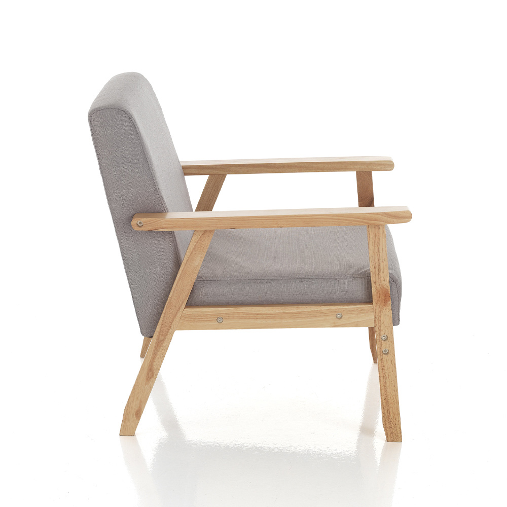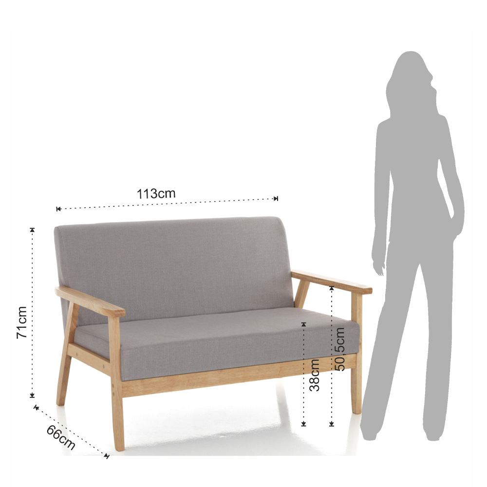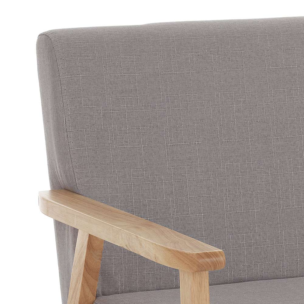 Sofa made with padded seat and backrest covered in non-removable gray fabric, feet in solid pine wood. This product embodies all the comfort and functionality to give yourself moments of tranquility and relaxation. The comfortable and enveloping seat guarantees unique comfort of its kind. Thanks to its finishes, it is a sofa that captures the gaze of those who enter the room, becoming the protagonist of the daily or contract environment.