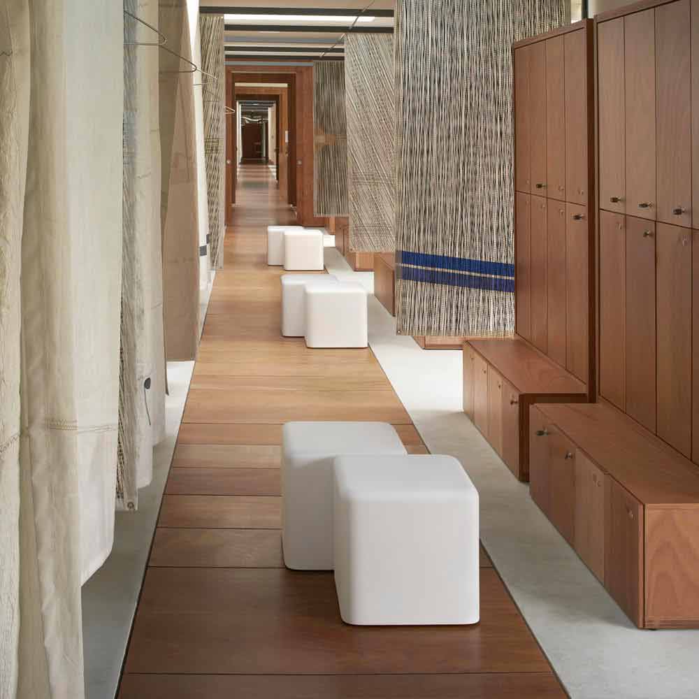 Made of soft polyurethane and available in five different colors: - Red; - White; - Clay; - Yellow; - Black. The structure of the internal metal frame makes Soft Cube very resistant; it is waterproof, fireproof and easily washable.