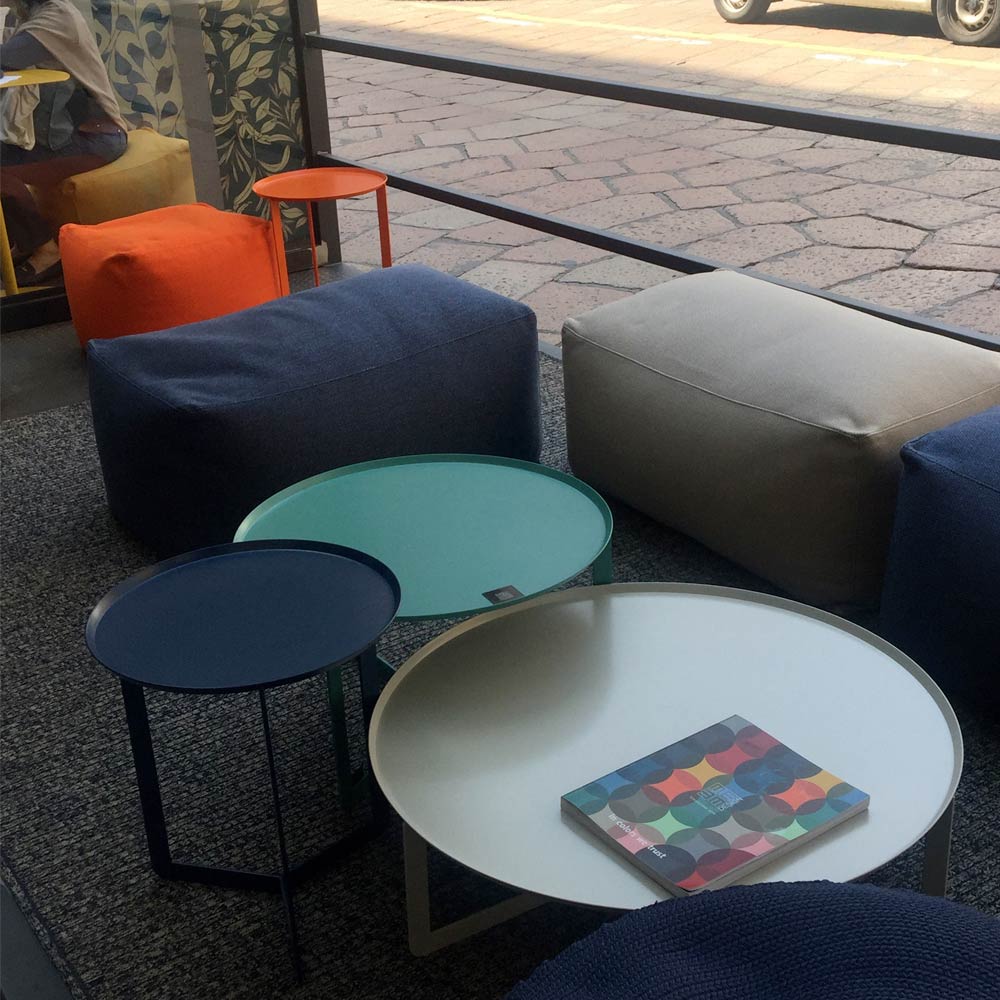 Soft pouf for indoor or outdoor living room in colored fabric of various finishes, high quality made in Italy.