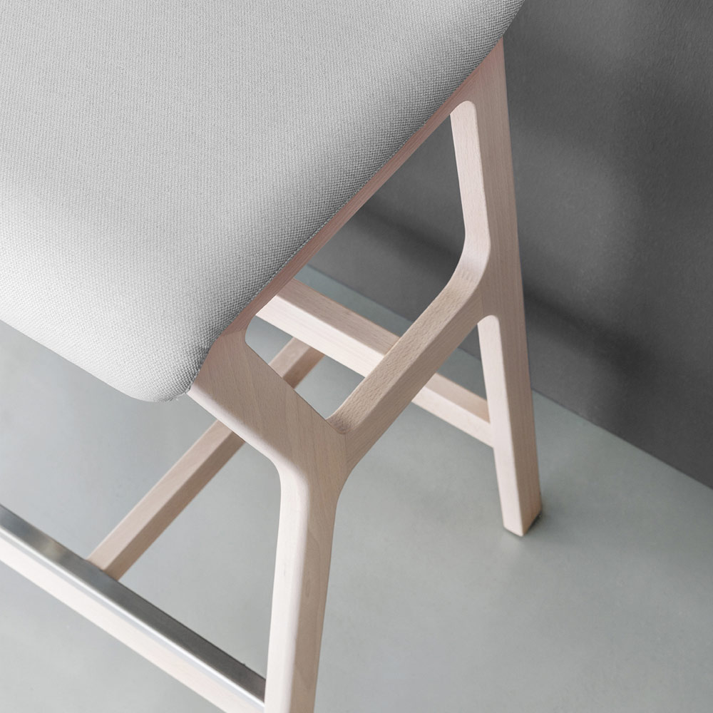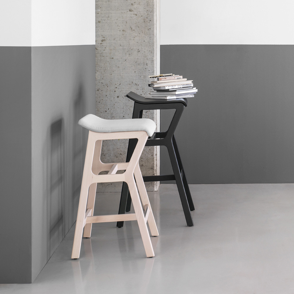 Modern stool made in Italy with beech wood structure and seat covered in fabric . Ideal for those looking for an object with an original and avant-garde style that stands out in any environment thanks to its creative design and the comfort it offers with the wonderful padded seat. Its conformation makes it a perfect choice to furnish your rooms with personality, representing a comfortable and welcoming solution and at the same time a real design object perfect for enriching the aesthetics of the room thanks to its decorative role. The use of wood also makes the stool particularly solid and robust, increasing its functional side even more.