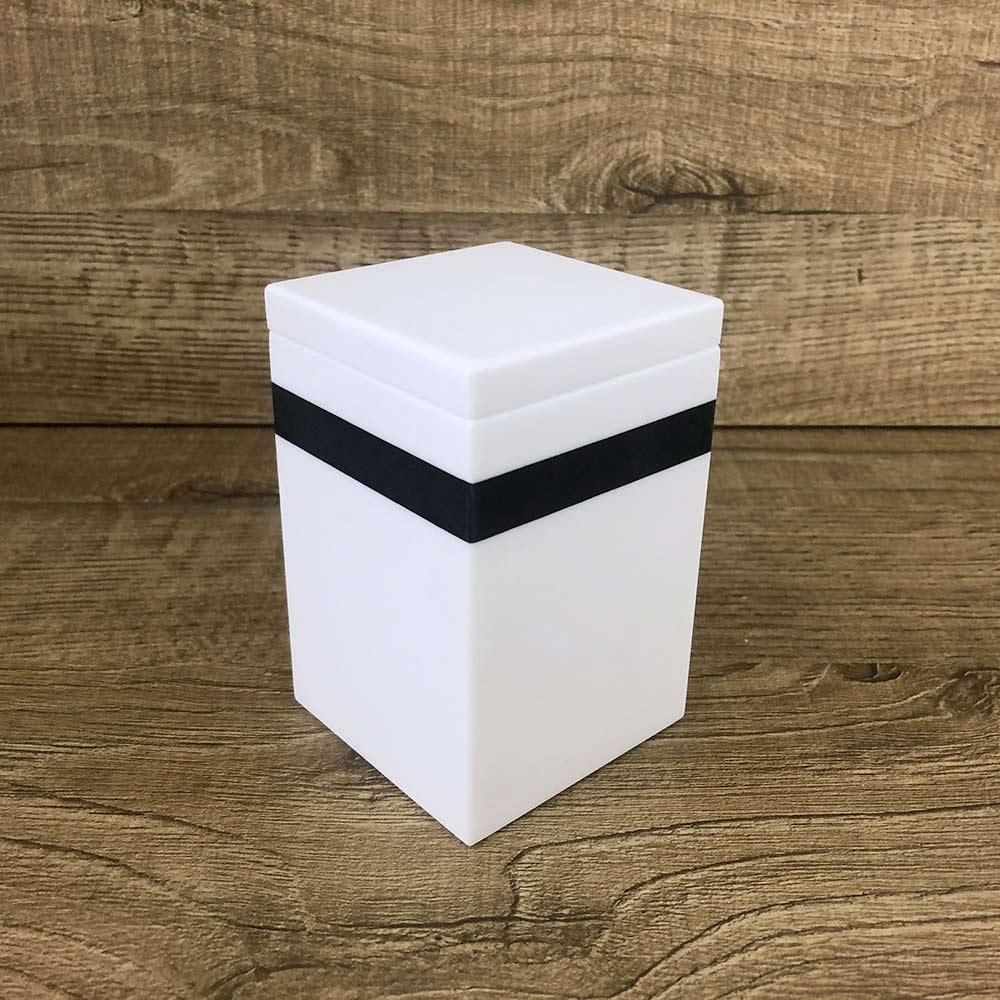 It is made entirely of 6 mm thick white Corianand is totally made in Italy . Thanks to the material used, this kitchen accessory with cap is highly resistant and hygienic.