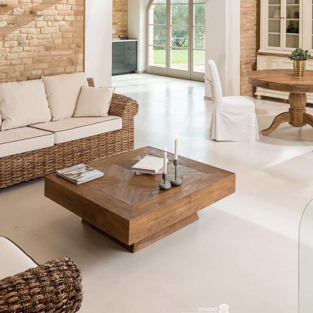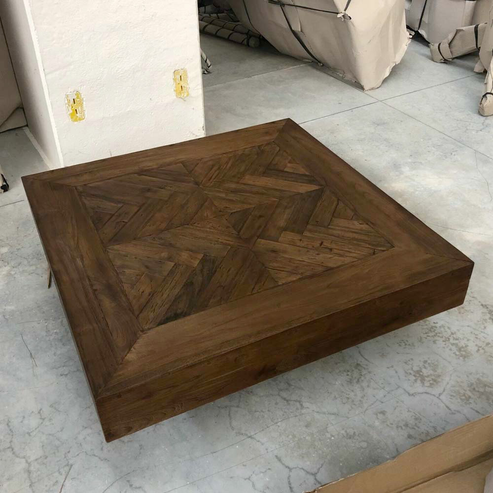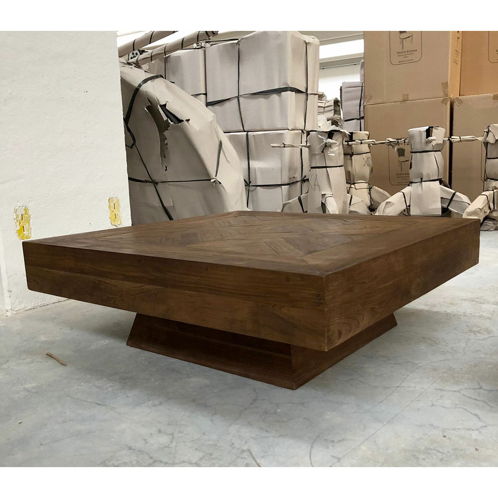 Square indoor coffee table madein recycled wood color coffee natural. .