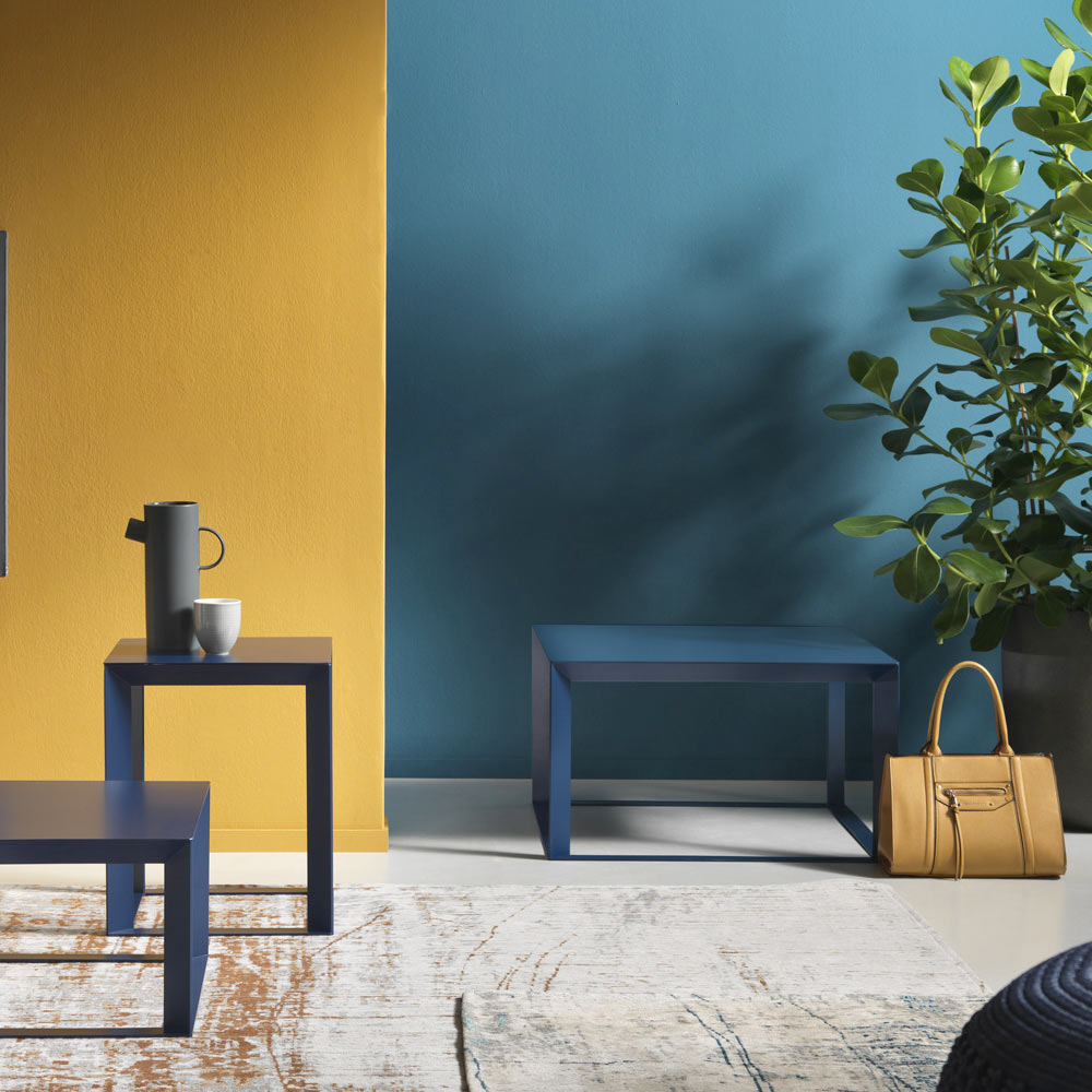 Available in two different sizes, its square format is ideal as a side table for the living room, but also as a bedside table to give a touch of color, style and design to the bedroom.