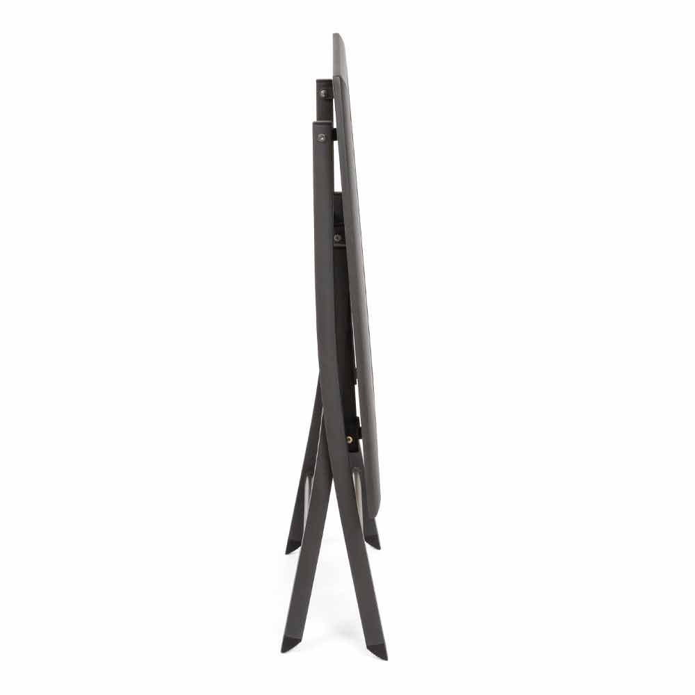 Outdoor dining table with folding aluminum structure.