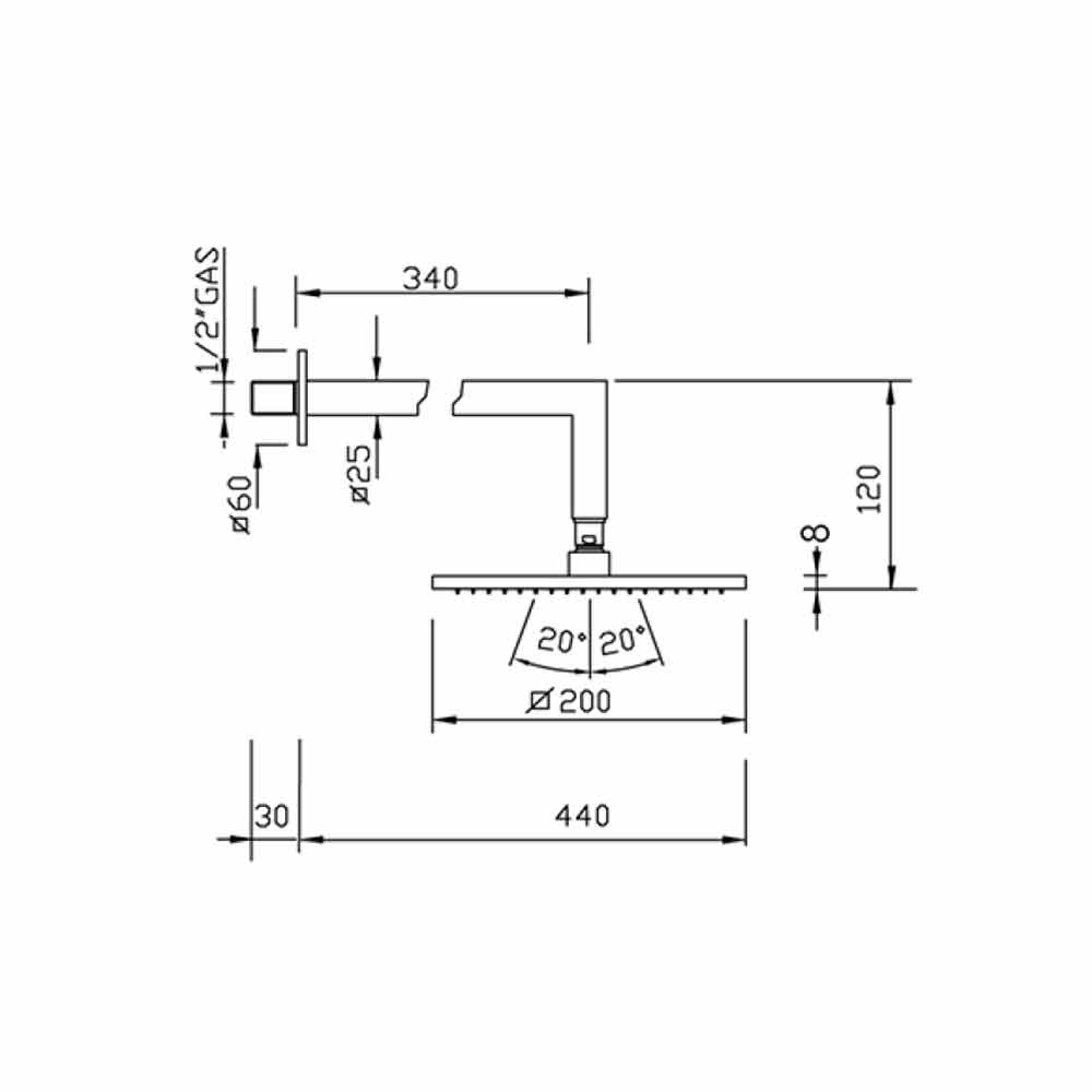 Square wall-mounted single jet shower head in steel and brass Made in Italy.
