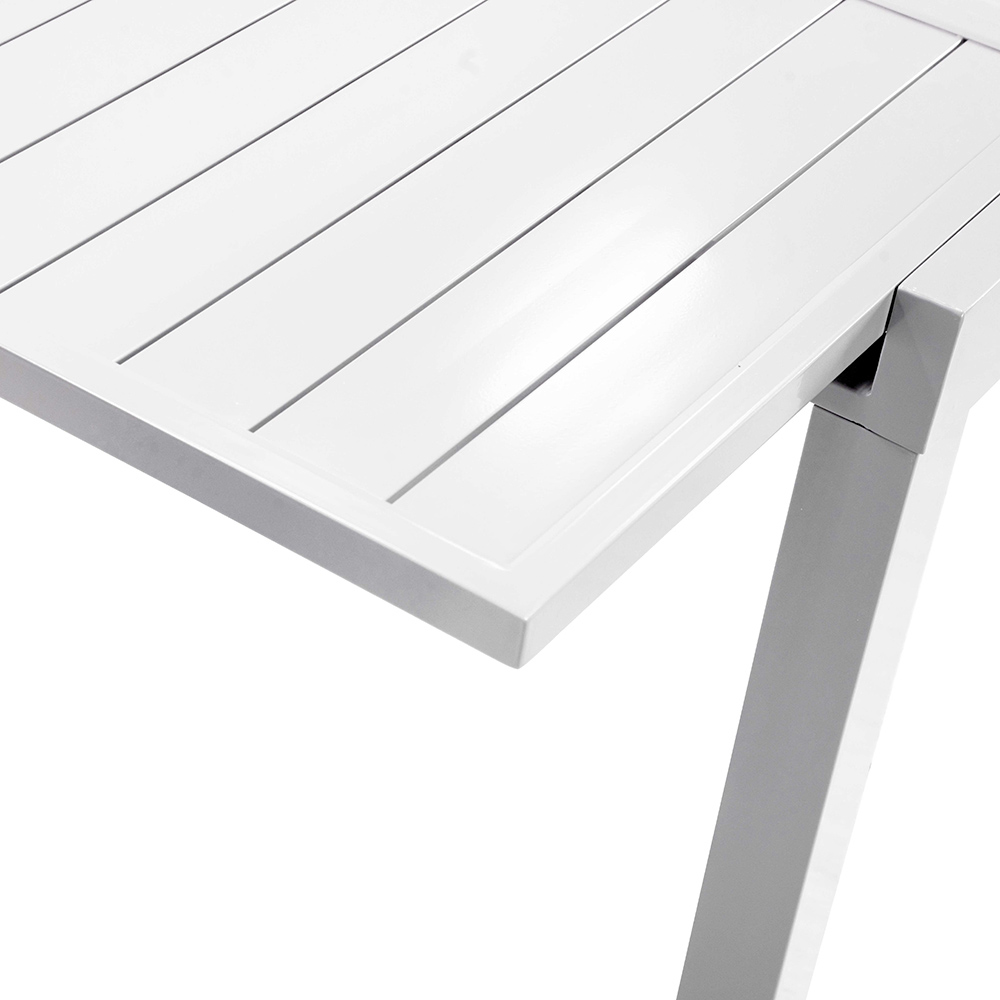 Thanks to its extendable mechanism, the table offers the flexibility to accommodate additional guests with ease, making it perfect for dinner parties, receptions or simply relaxing outdoors. Its aluminum frame guarantees long-lasting durability and resistance to the elements, ensuring that your investment is as practical as it is beautiful to look at.
