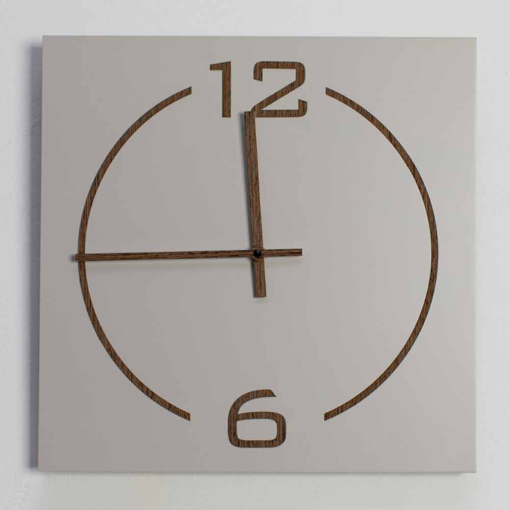 Square Wall Clock and Modern Design in Beige and Brown Wood - Tabata