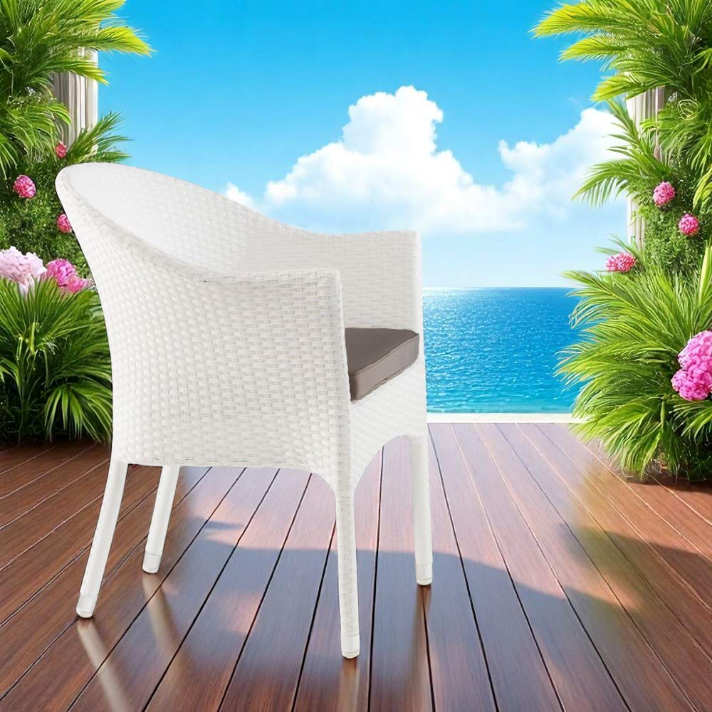 Its white woven wicker covering gives an elegant and airy visual effect, perfect for those who love a natural but refined style. The stackable design makes it extremely functional and space-saving , ideal for both residential and contract contexts, such as hotels , restaurants or outdoor venues .