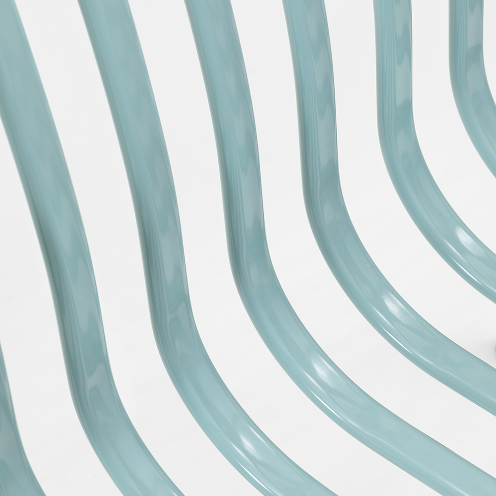 wire weft with vertical oval shapes that harmoniously and sinuously follow the ergonomic shapes of the structure, adapting best to the silhouette of the body to offer