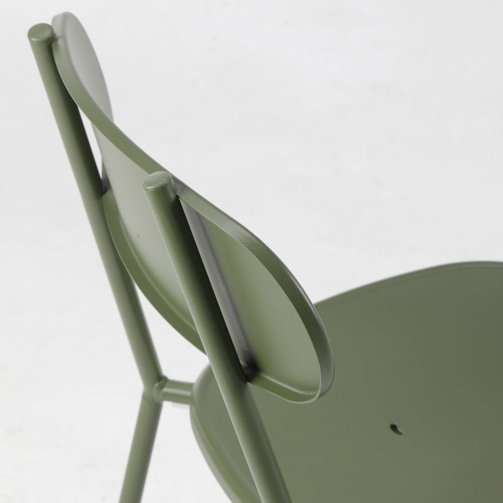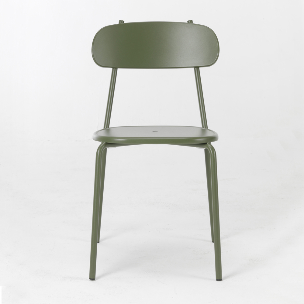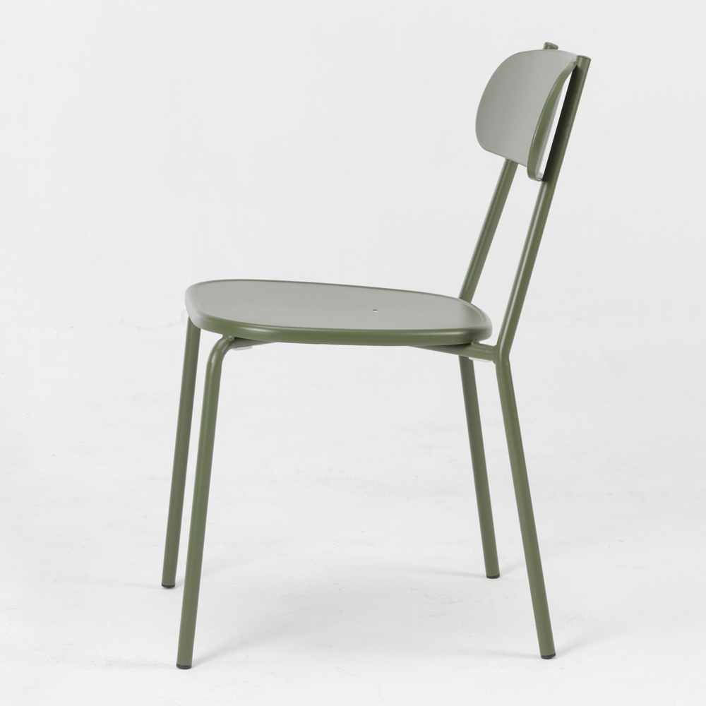 Stackable garden chair entirely made in Italy in recyclable powder-coated galvanized iron, galvanized and painted. A furnishing accessory for outdoor spaces that combines design and practicality . Its simple and particularly modern shapes, the bold and bright colors that give vivacity to the context and the functionality brought to the highest levels make this chair a perfect solution for furnishing any environment, both domestic and contract.