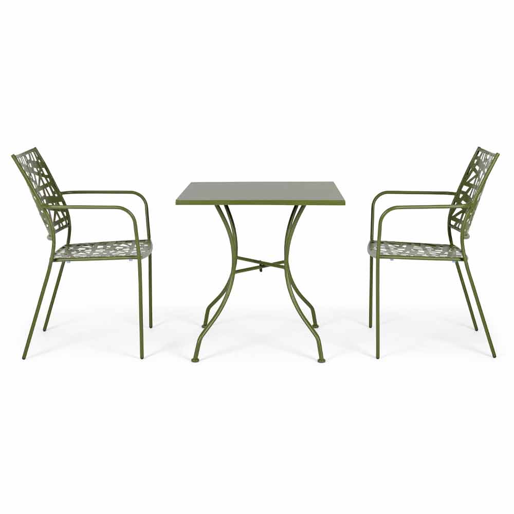 treated for outdoor use (e-coating) and powder coated (polyester) with matte finish. Stackable.