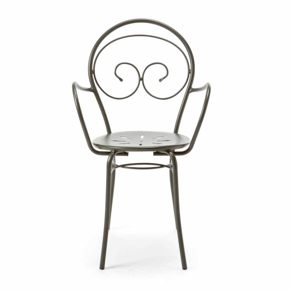Stackable outdoor chair with or without armrests in powder-coated galvanized iron Made in Italy, 2 pieces.
