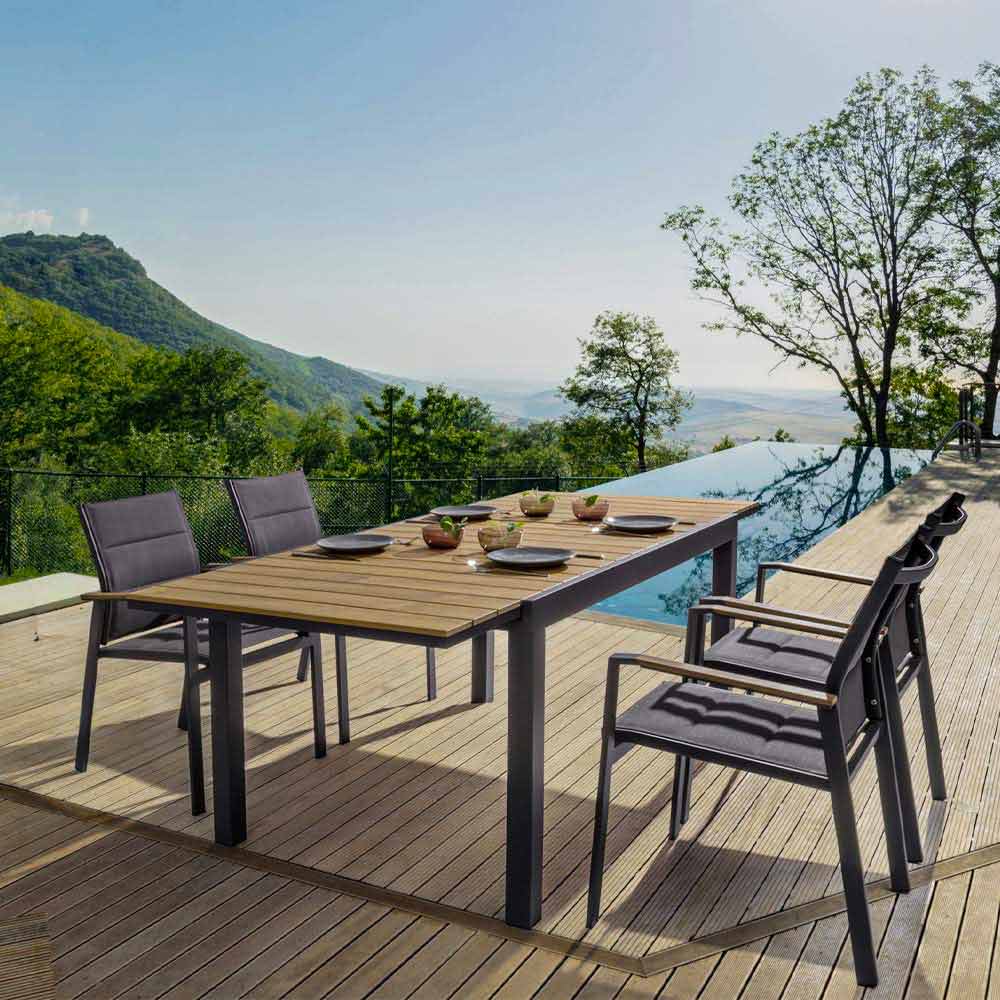 Stackable Garden Chair in Anthracite Gray Aluminum and Teak - Aidan
